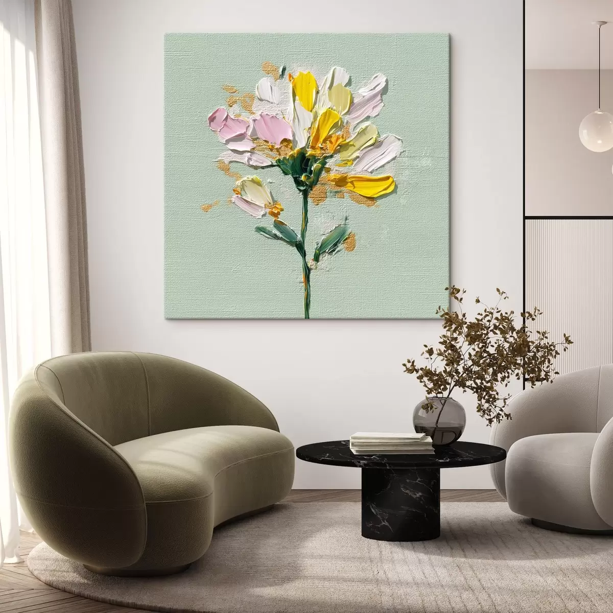 Tableau Bouquet ensoleillé sur fond menthe Nr s44354