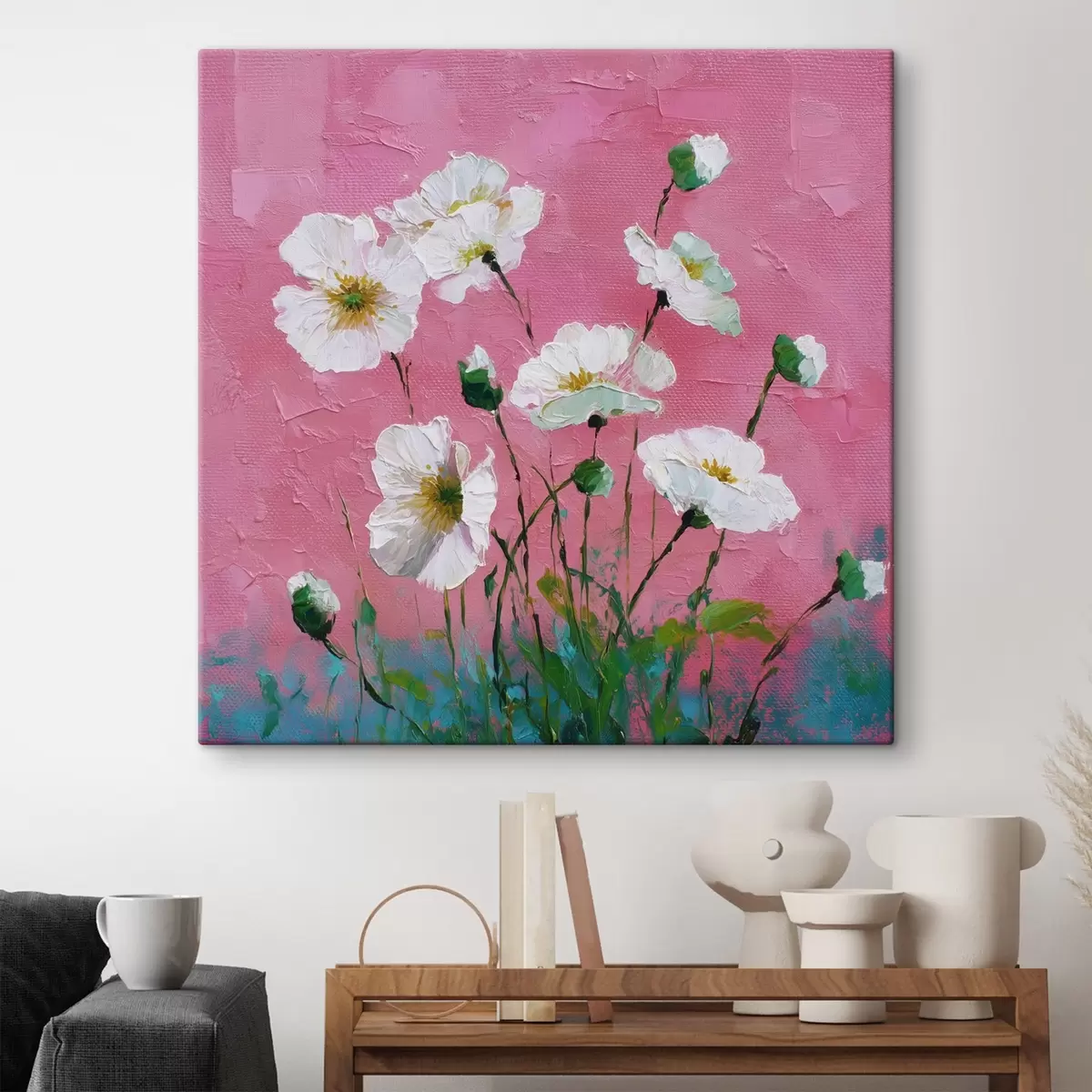 Tableau Fleurs blanches sur fond rose Nr s44360