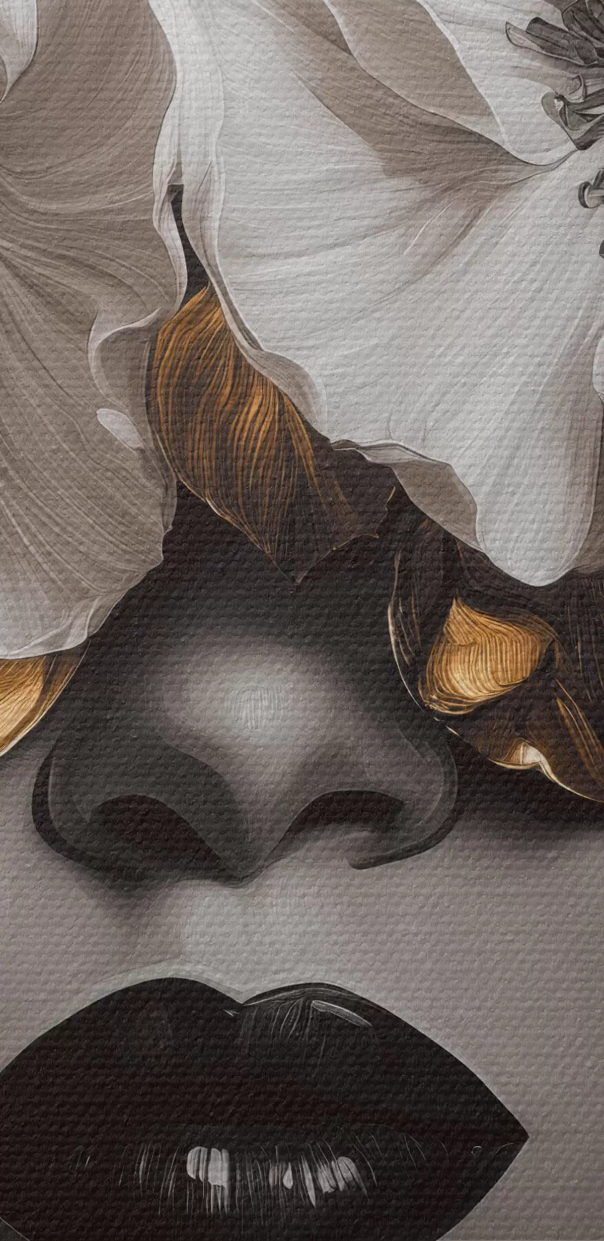 Tableau Portrait semi-abstrait d'une femme avec des fleurs s44365
