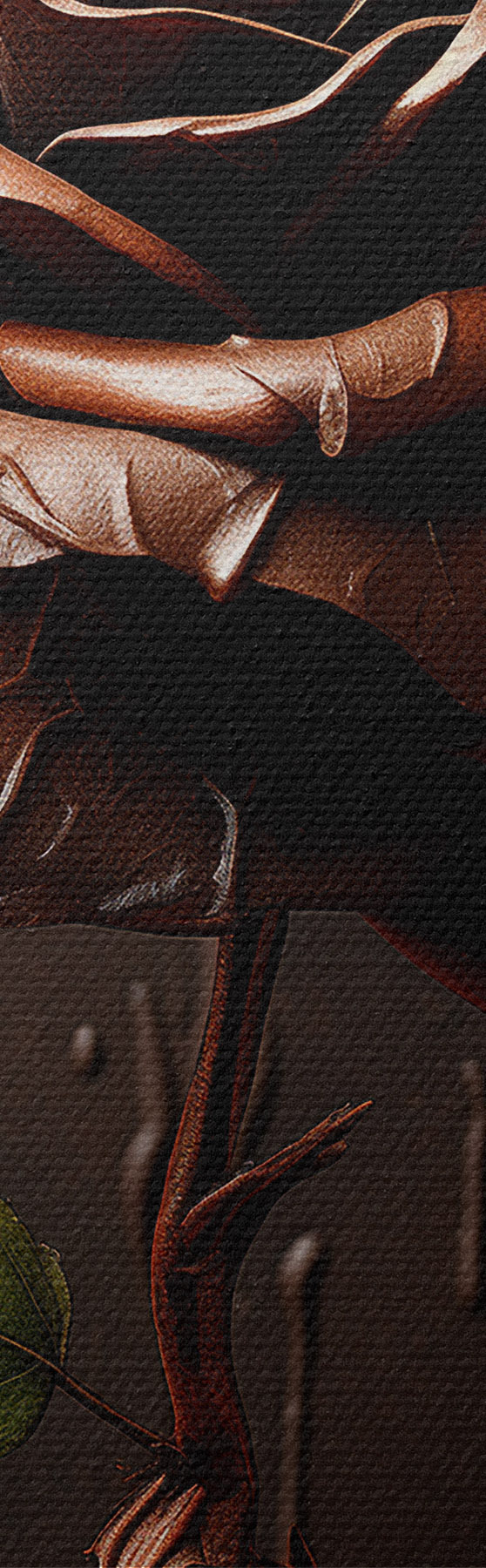 Tableau Rose brune sur fond noir avec éclaboussures de chocolat Nr s44381