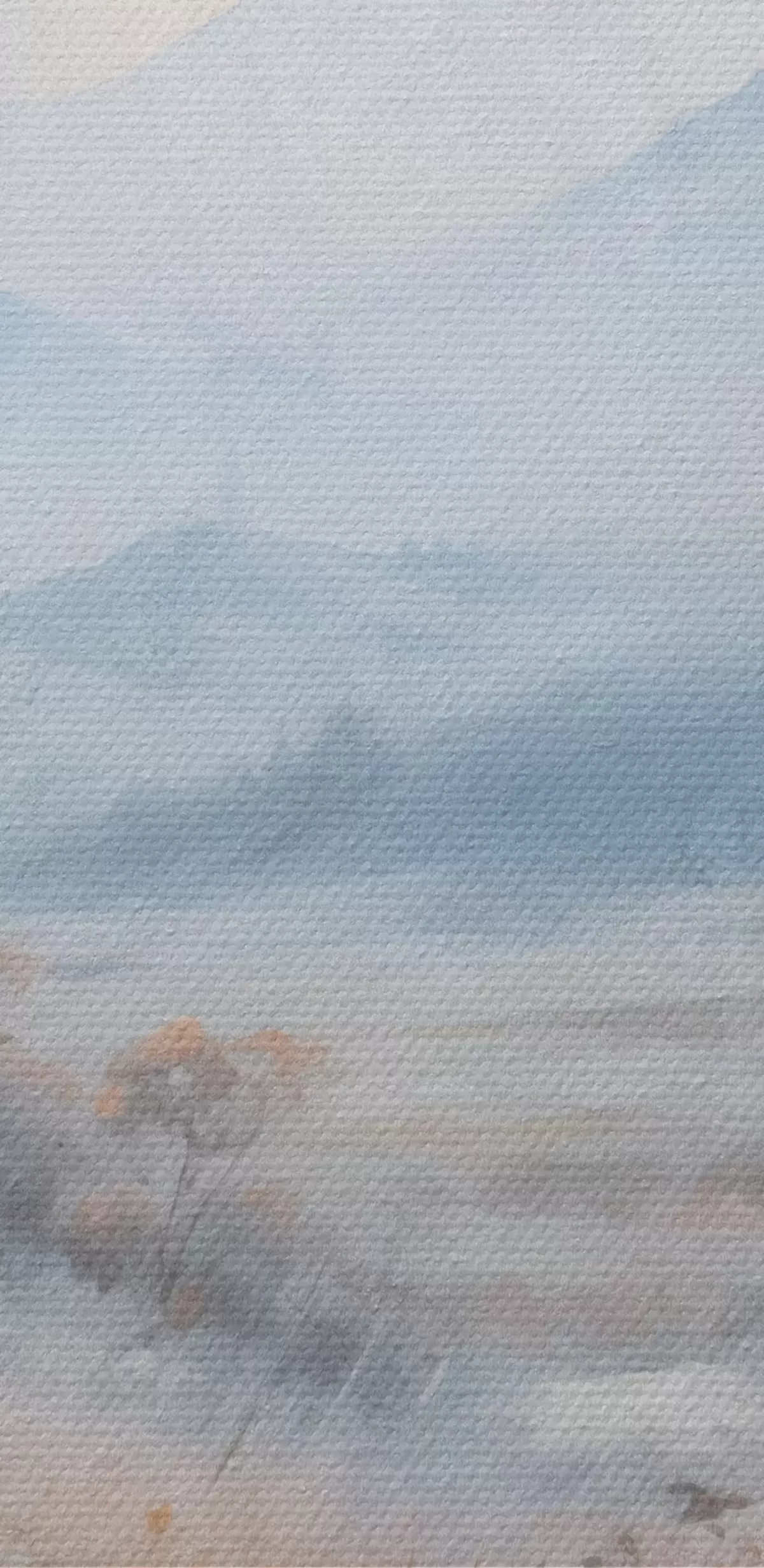 Le tableau peut être accroché immédiatement après réception. Le tableau est tendu sur un châssis en bois de 2 cm de large.