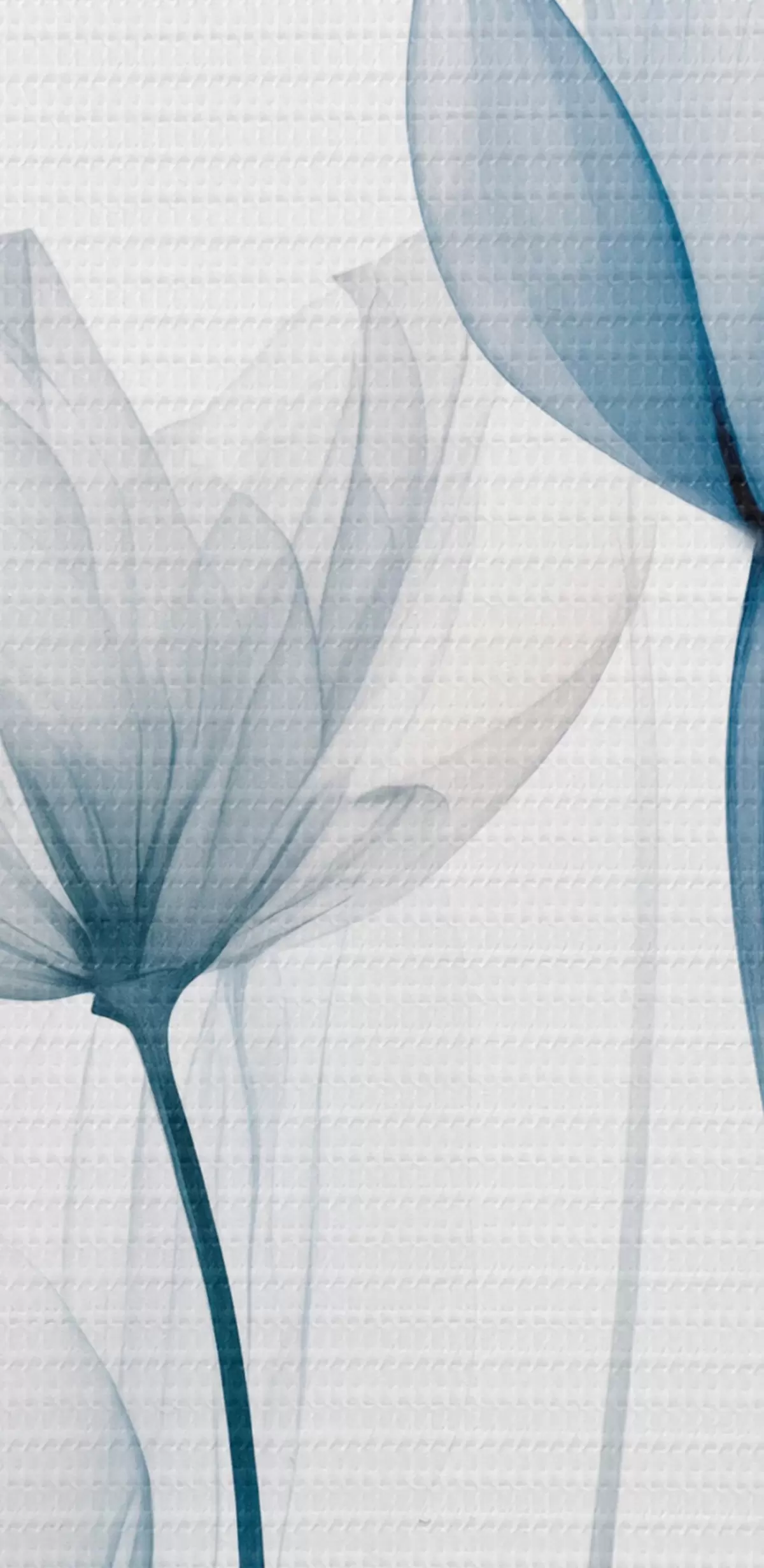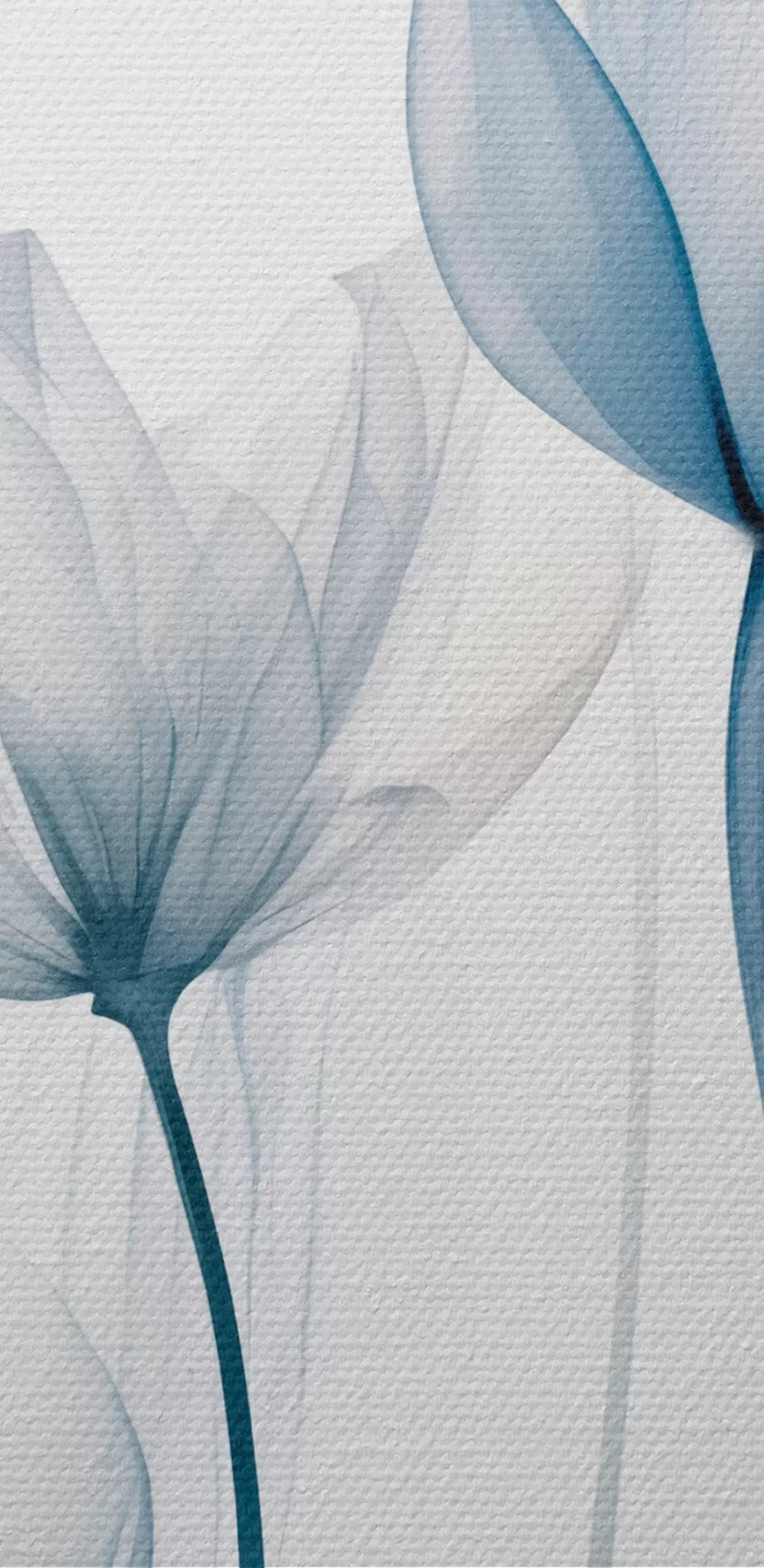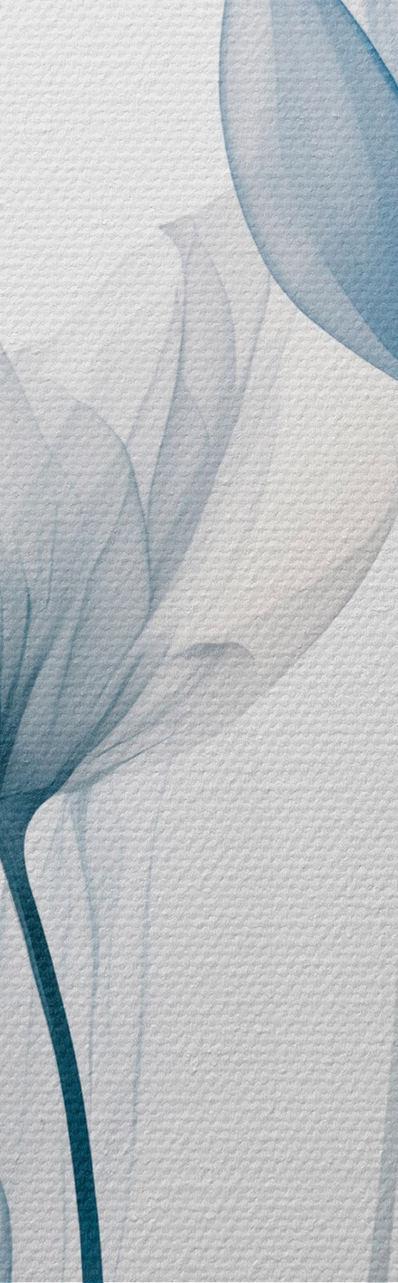 Tableau Tulipes bleues et blanches translucides à longues tiges, sur fond blanc uni Nr s44409