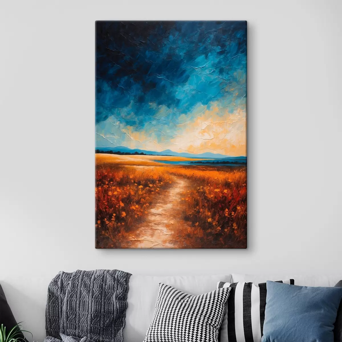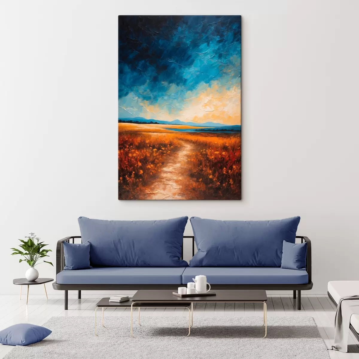 Tableau Champ de fleurs le soir en peinture acrylique Nr s44440