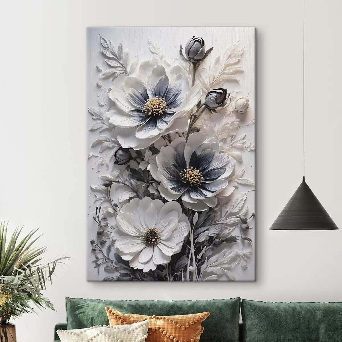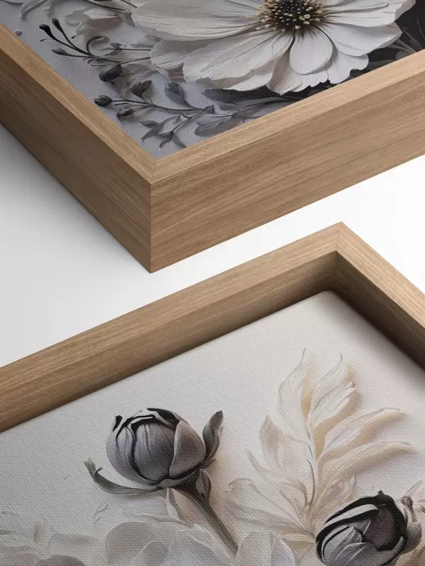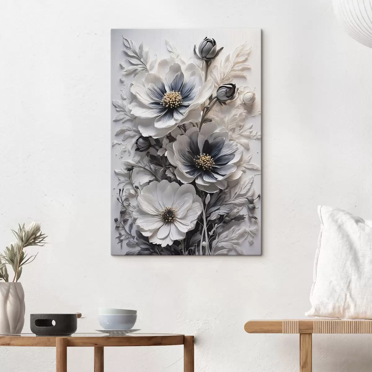 Tableau Fleurs noires et blanches sur fond blanc Nr s44446