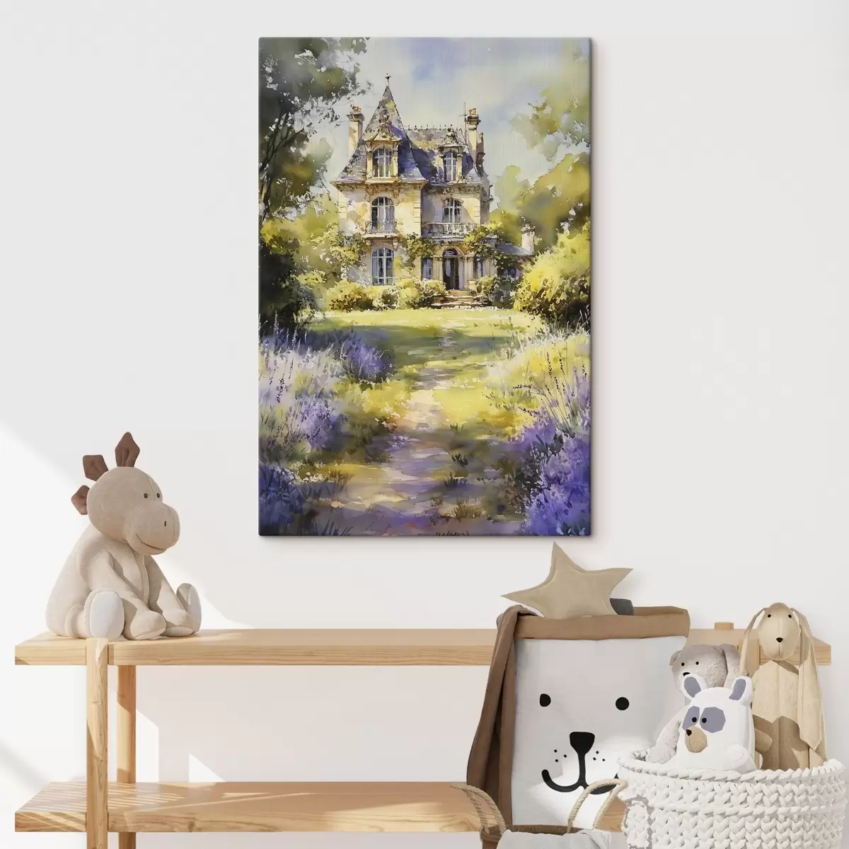 Tableau Chalet de campagne français, style aquarelle, champs de lavande s44501