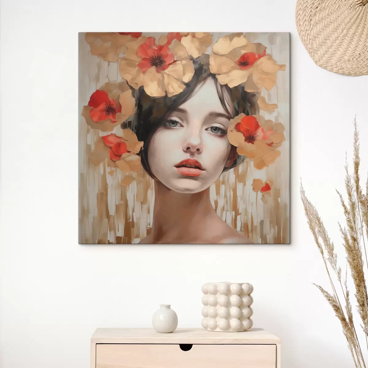 Tableau Portrait d'une jeune fille avec des fleurs s44593
