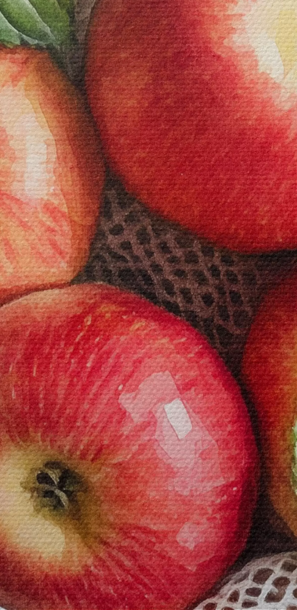 Tableau Pommes rouges dans un sac en lin avec des feuilles de menthe, style rustique, fruits Nr s44609