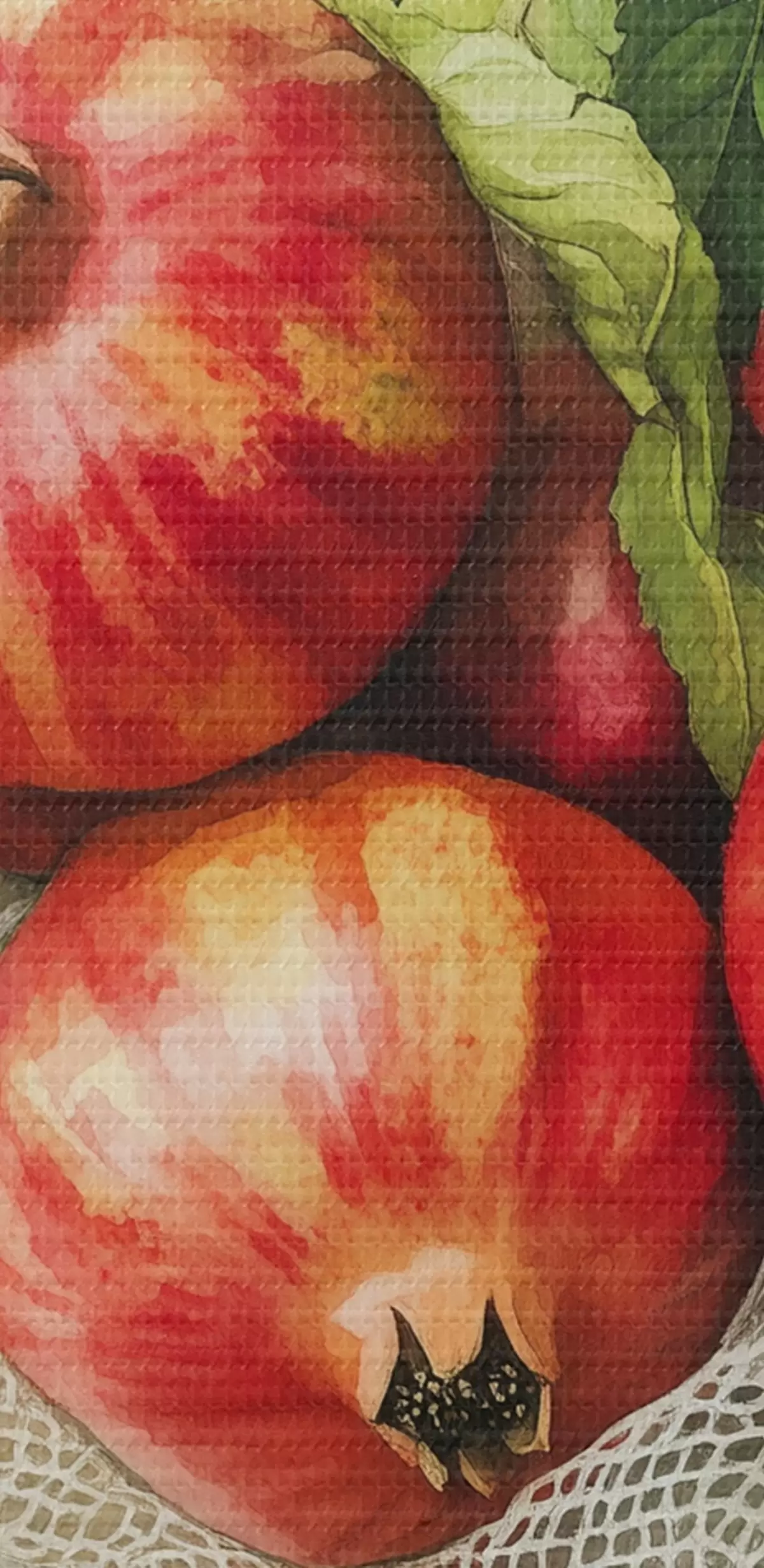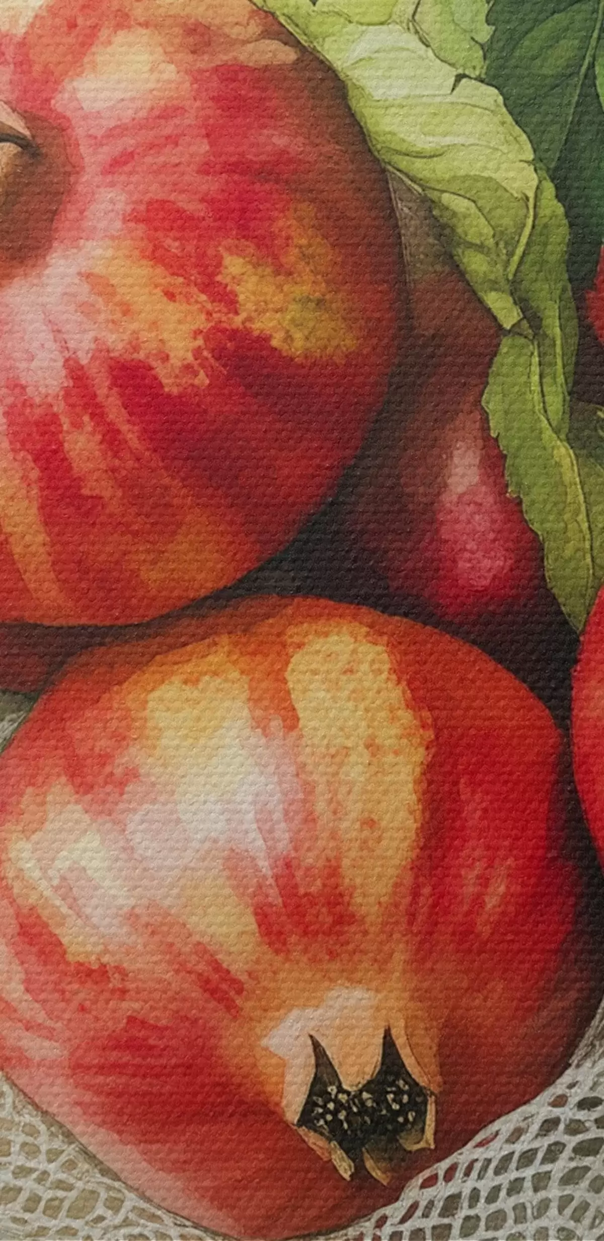 Tableau Grenades avec feuilles de menthe sur les nappes en lin, style rustique Nr s44611