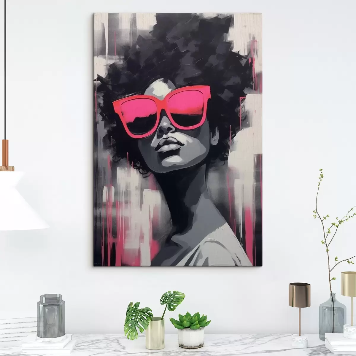 Tableau Fille avec des lunettes roses, style noir et blanc Nr s44624