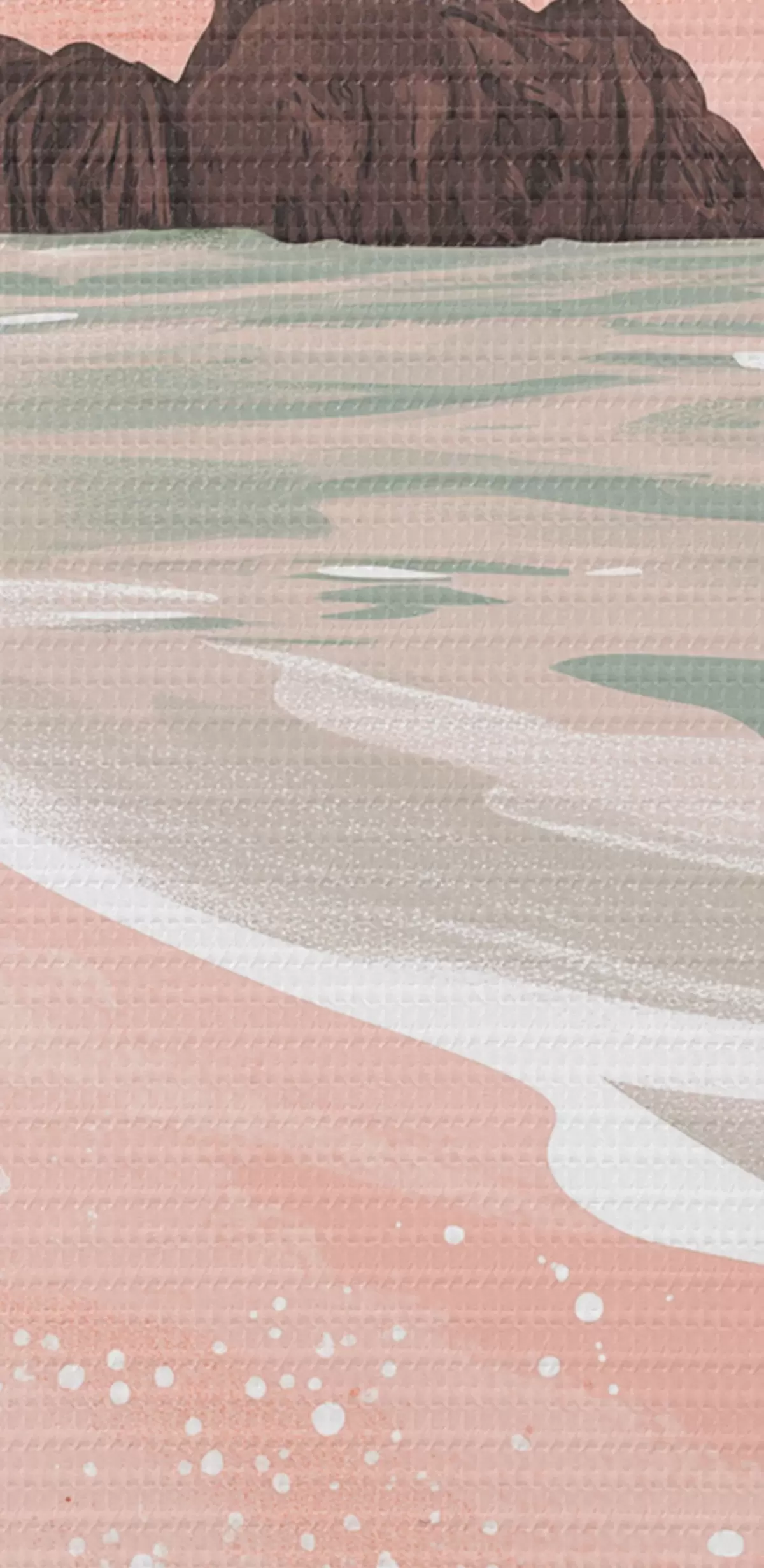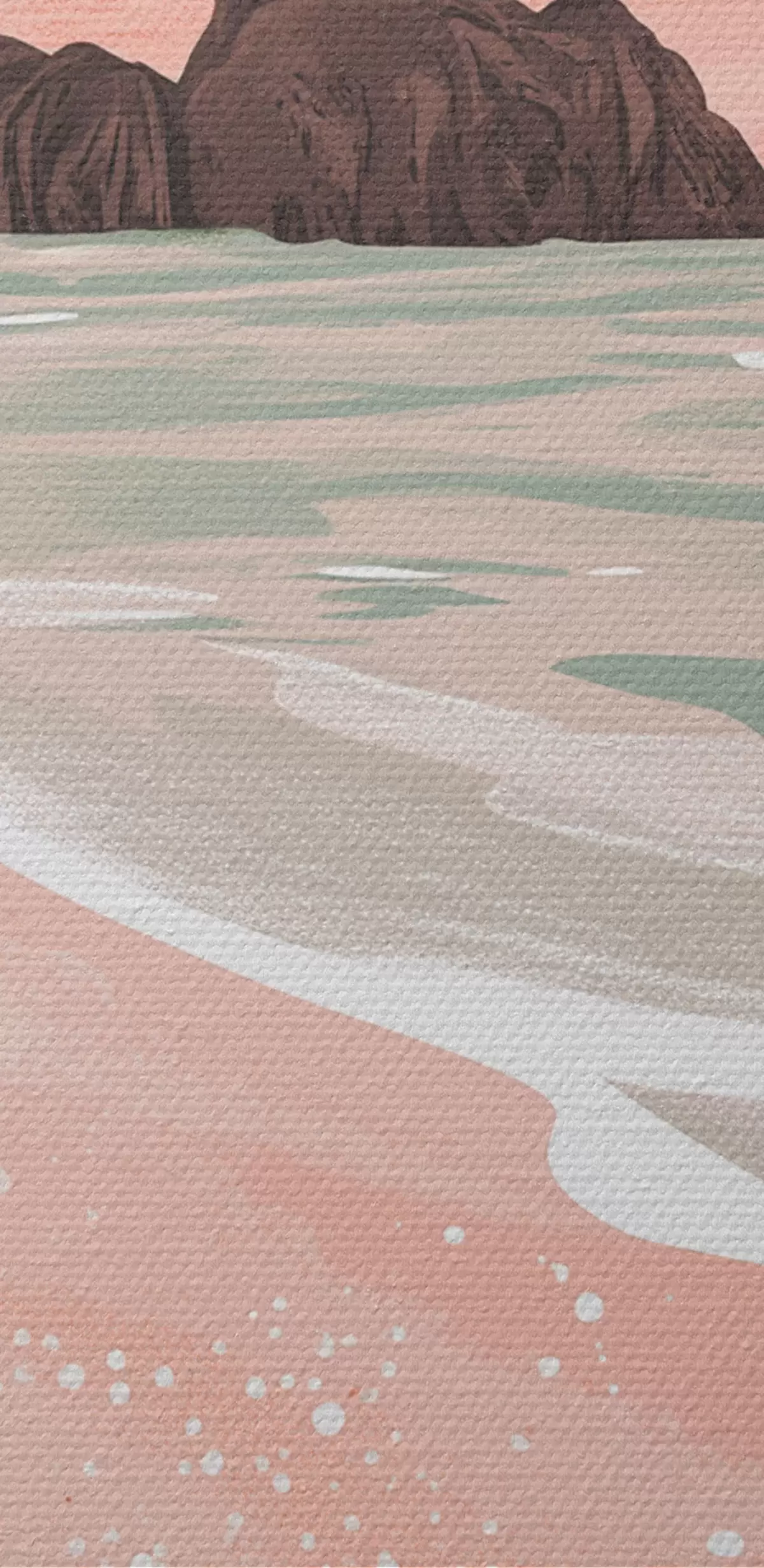 Tableau Douce plage rose avec des maisons blanches et des coquillages  s44713