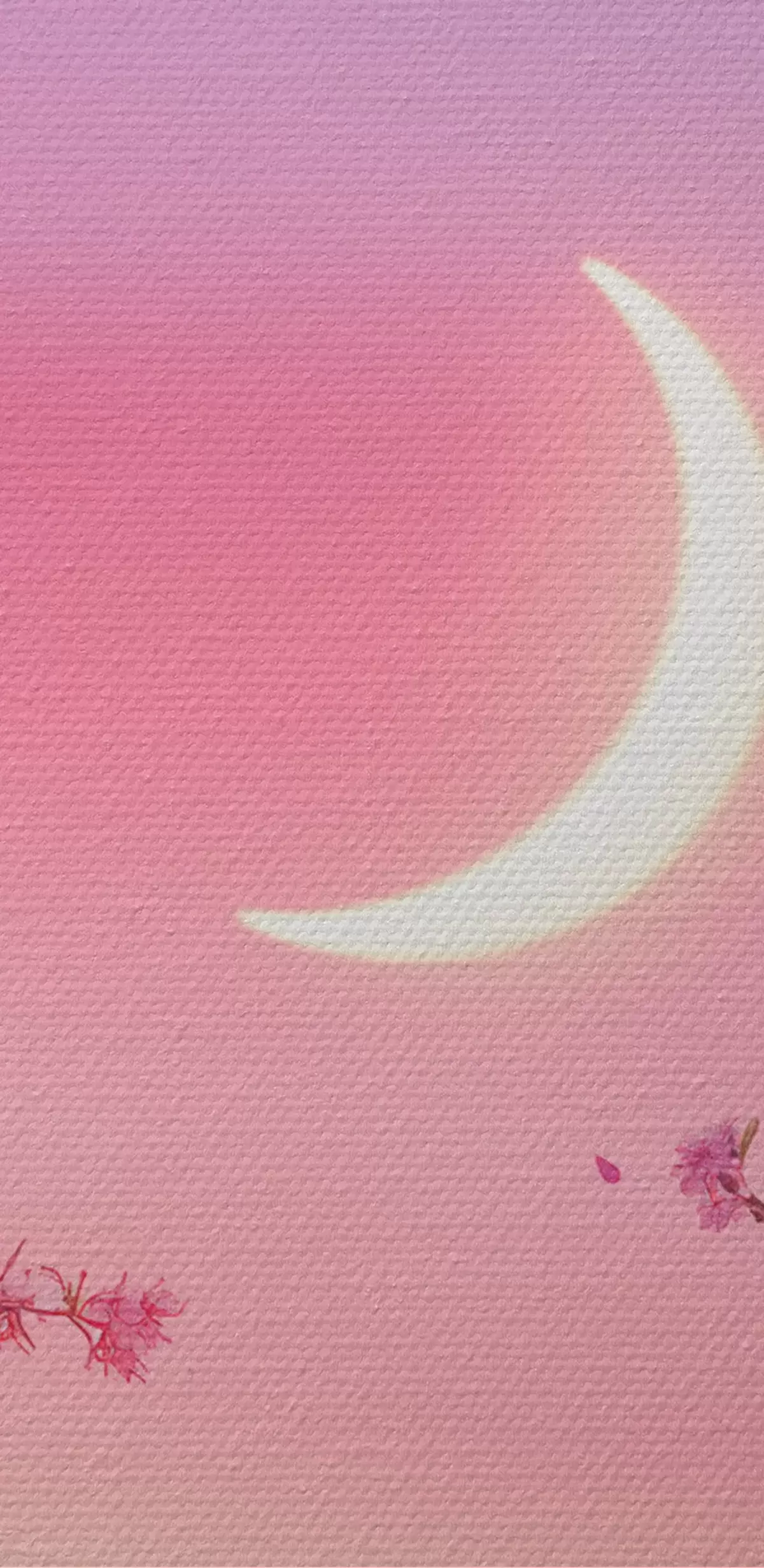 Tableau Fleur de cerisier, ciel rose avec lune brillante, réalisme s44715