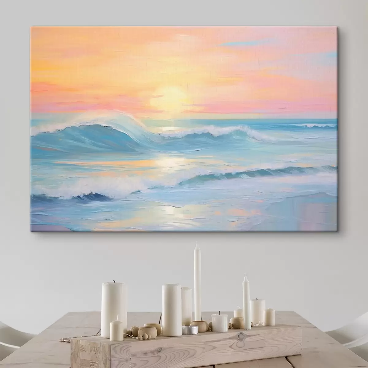 Tableau Vagues de la mer sur fond de coucher de soleil Nr s44729