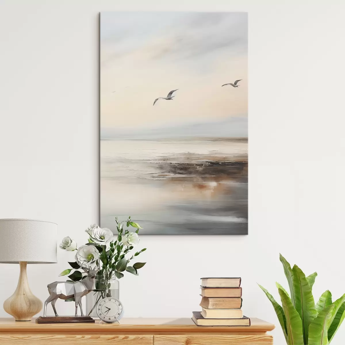 Tableau Paysage pastel avec mouettes en vol Nr s44763
