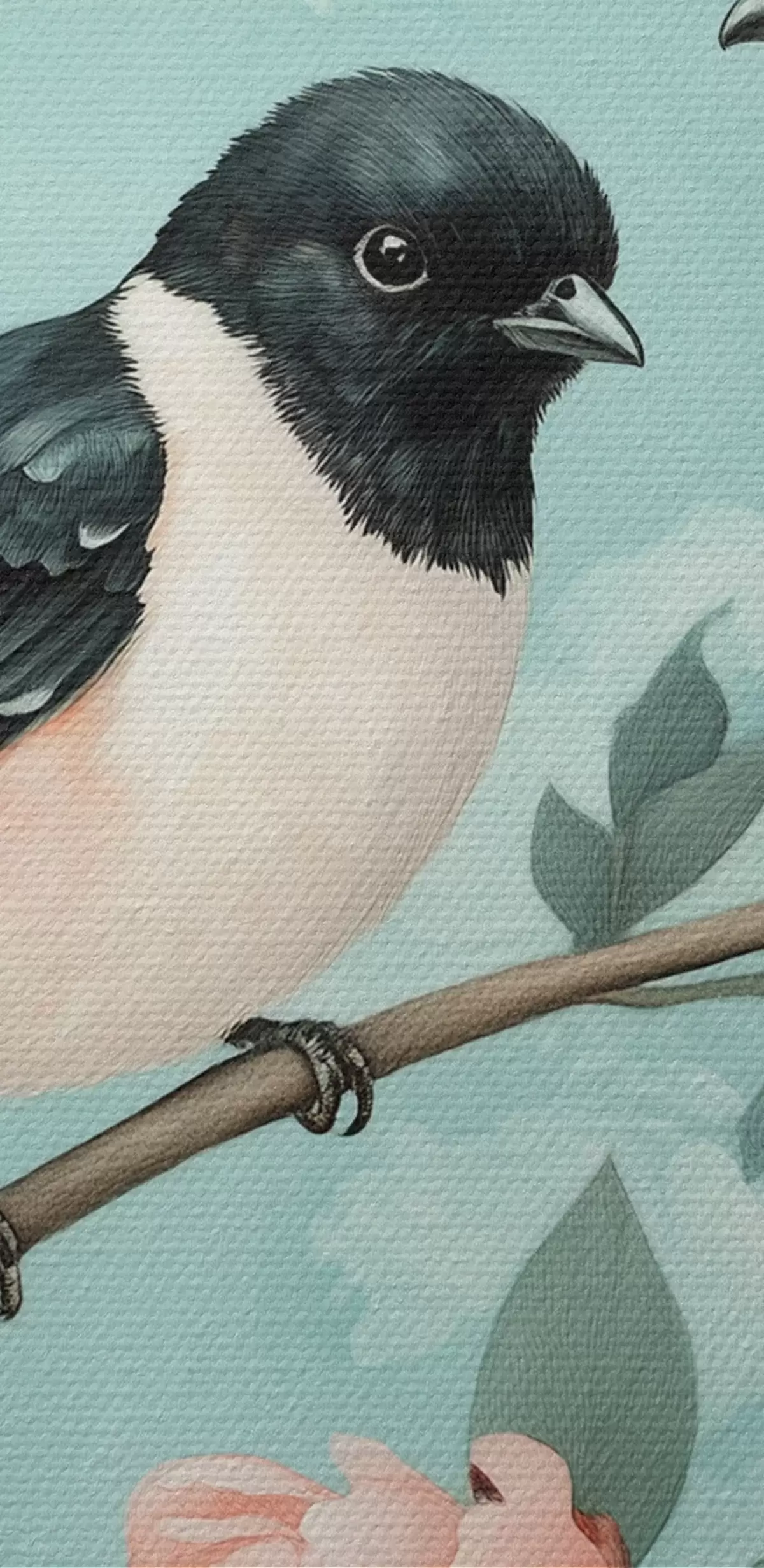Tableau Deux oiseaux sur la branche avec des pivoines  s44786