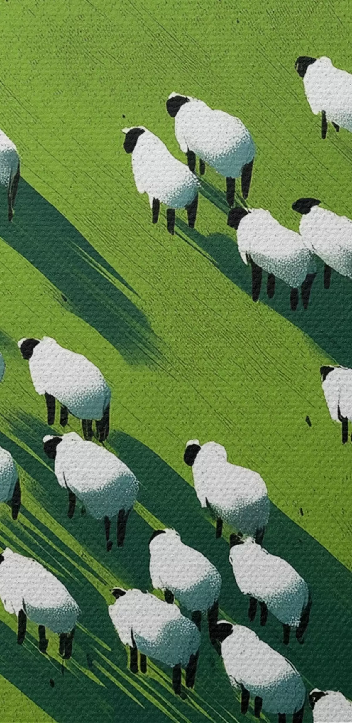 Tableau Champ vert avec un troupeau de moutons, abstraction, vue aérienne Nr s44793