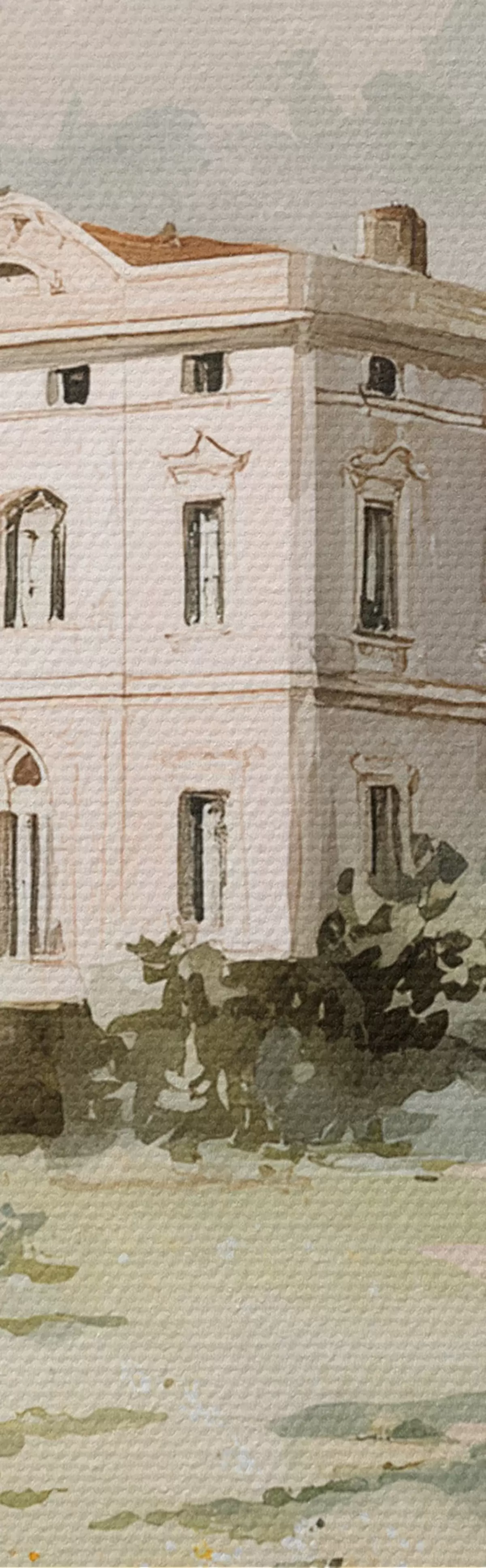 Tableau Village méditerranéen avec maison blanche entourée de jardin Nr s44796