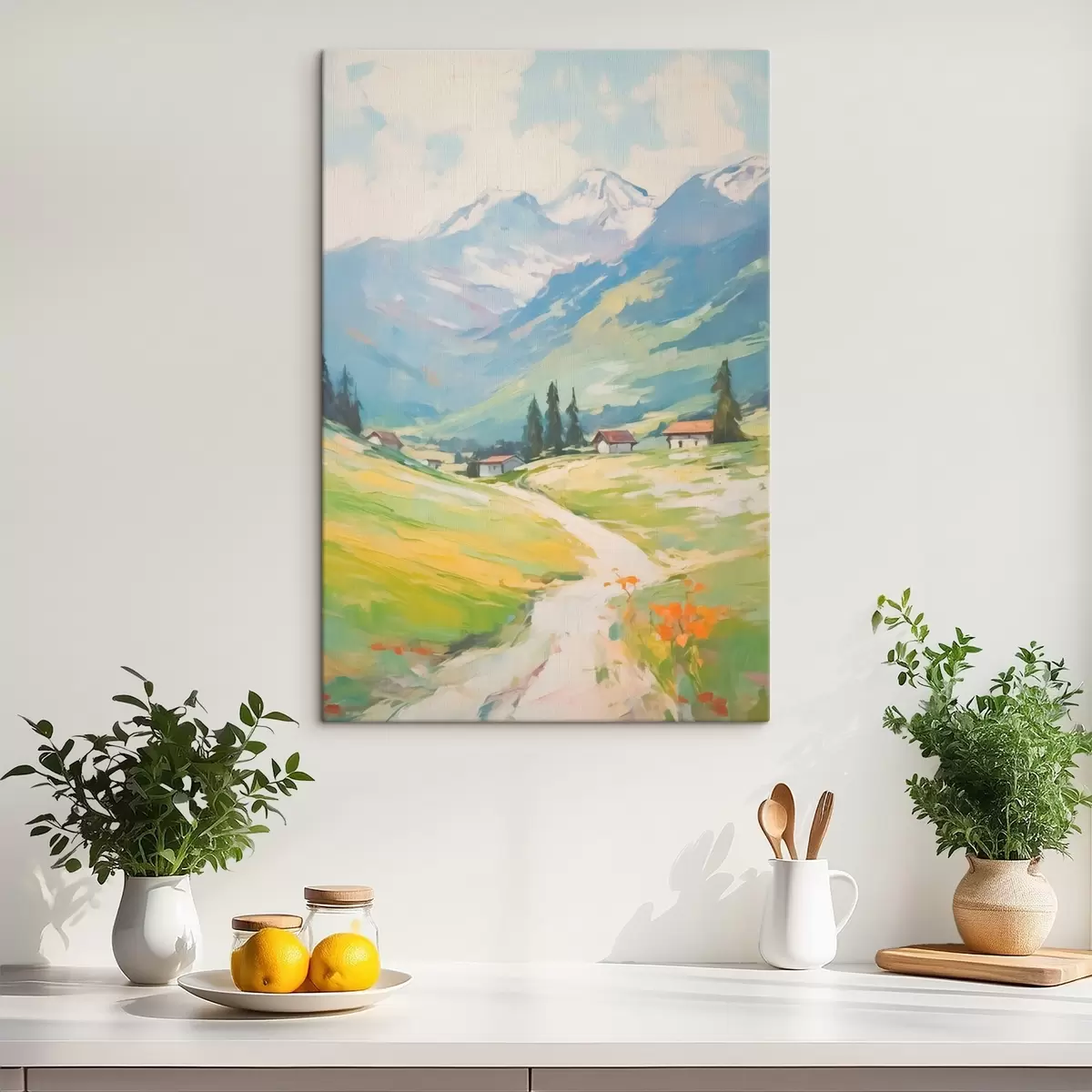 Trois types de matériaux peuvent être commandés : Economic Canvas - matériau dense et durable pour l'impression numérique, identique à la toile de peintre, surface imperméable, reproduction réaliste des détails, matériau à grain moyen. Premium Canvas - la texture ressemble à celle d'une toile de peintre (petits fils entrelacés). Reproduction douce et détaillée de l'image sur une surface mate. Eco-Premium - tissu 100 % coton de haute qualité. Grâce aux fibres naturelles de coton, le matériau est durable et résistant à l'usure. Excellente reproduction des couleurs et des détails.