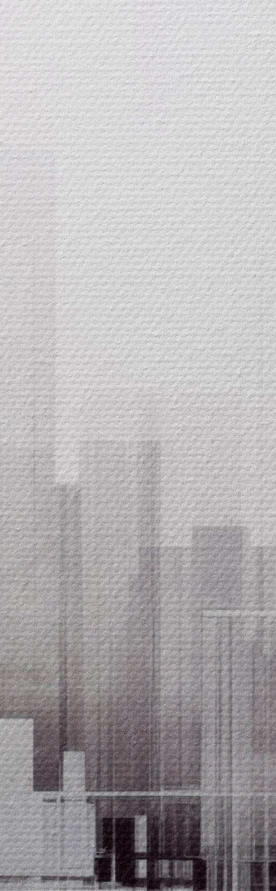 Tableau Paysage urbain minimaliste texturé avec de grands bâtiments et des gratte-ciel, silhouettés sur un ciel blanc Nr s44863