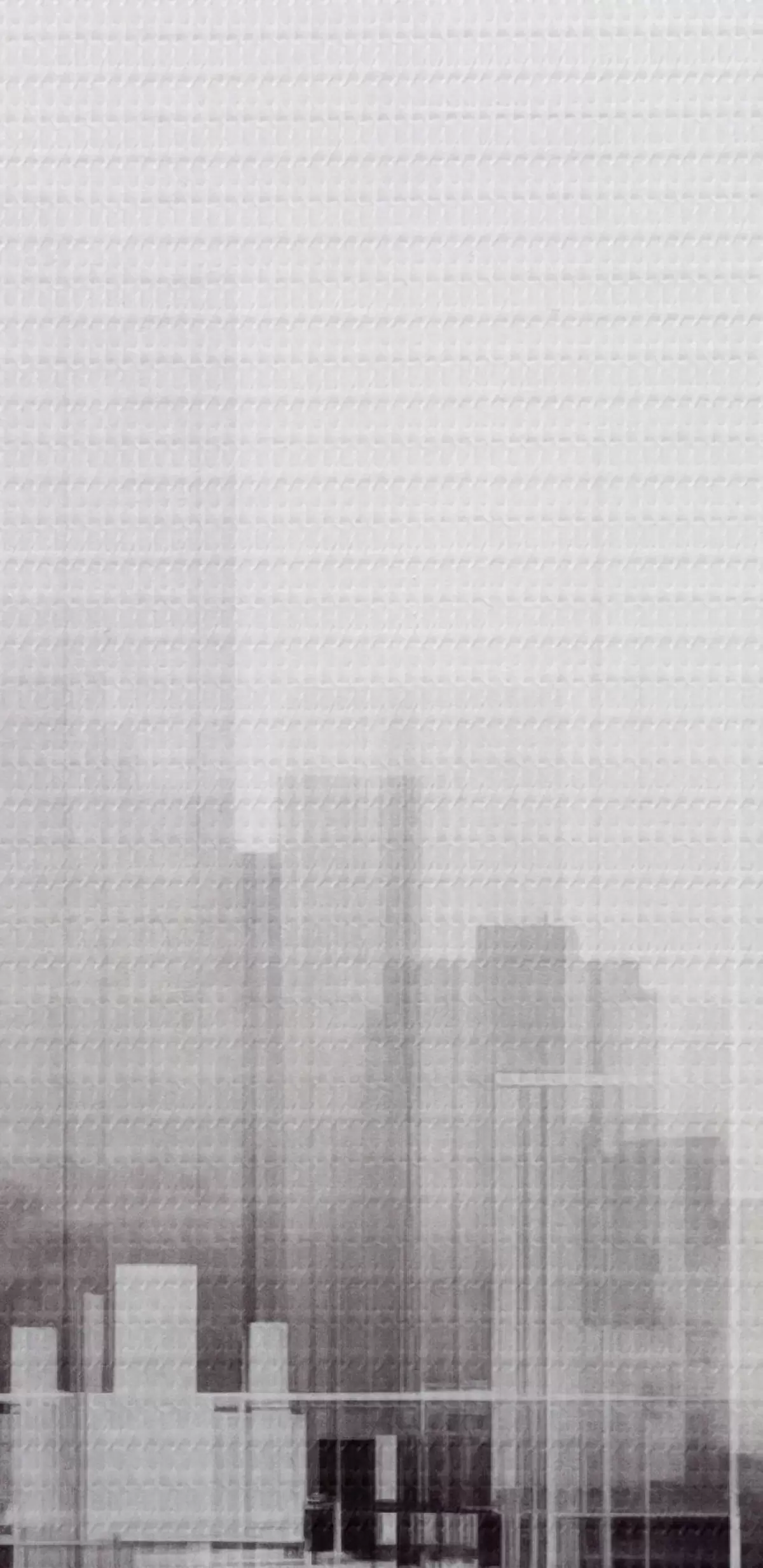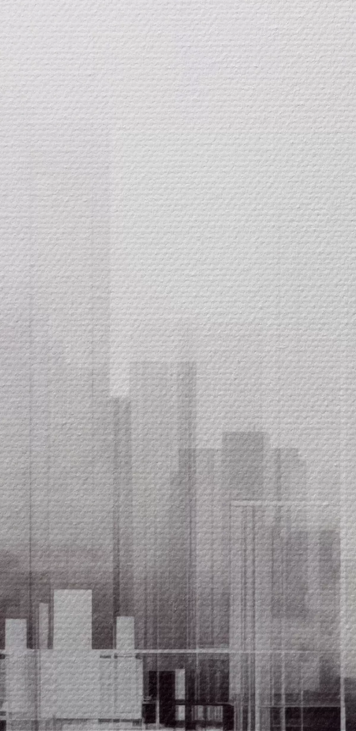 Tableau Paysage urbain minimaliste texturé avec de grands bâtiments et des gratte-ciel, silhouettés sur un ciel blanc Nr s44863