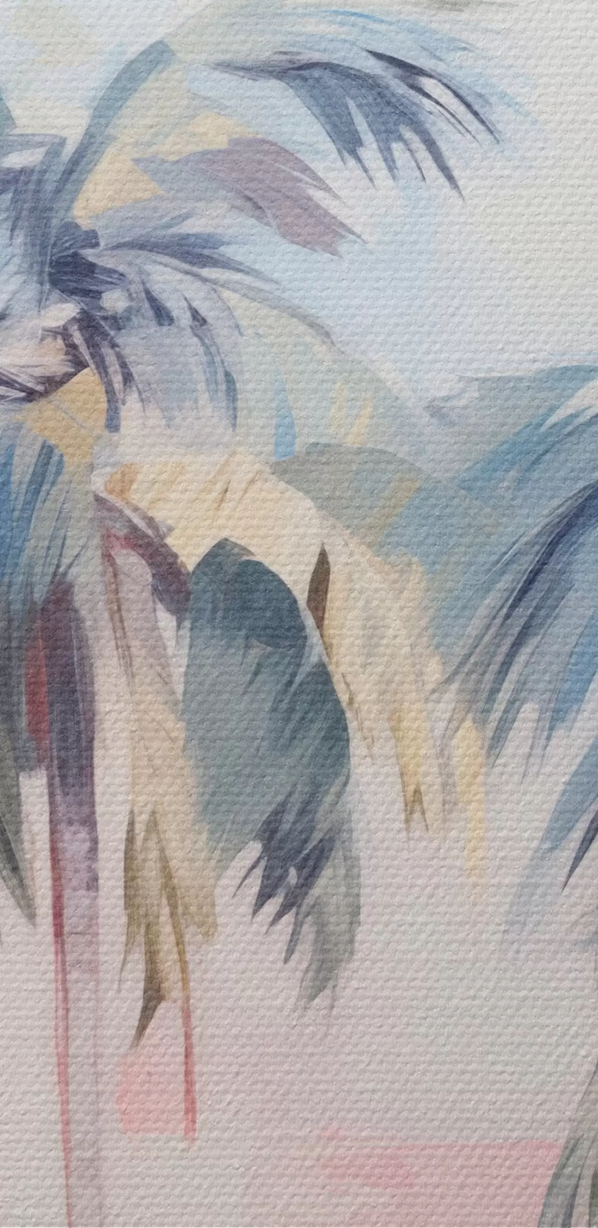 Tableau Palmiers aux feuilles pastel et aux troncs bruns, ciel rose et bleu, environnement tropical Nr s44866