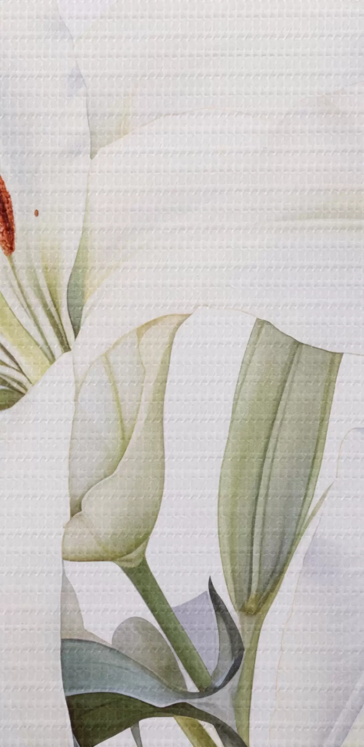 Tableau Un bouquet de lys blancs avec des feuilles vertes, des pétales délicats et un fond blanc doux s44868