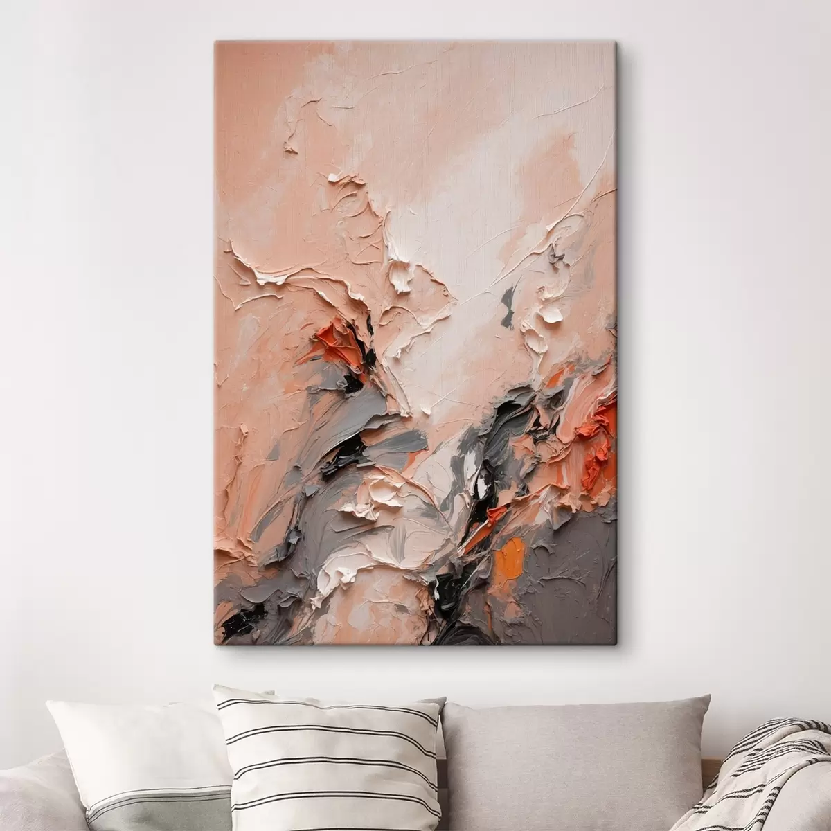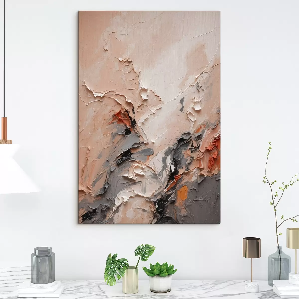 Tableau Abstrait dans les tons gris pêche avec des traits texturés s44873