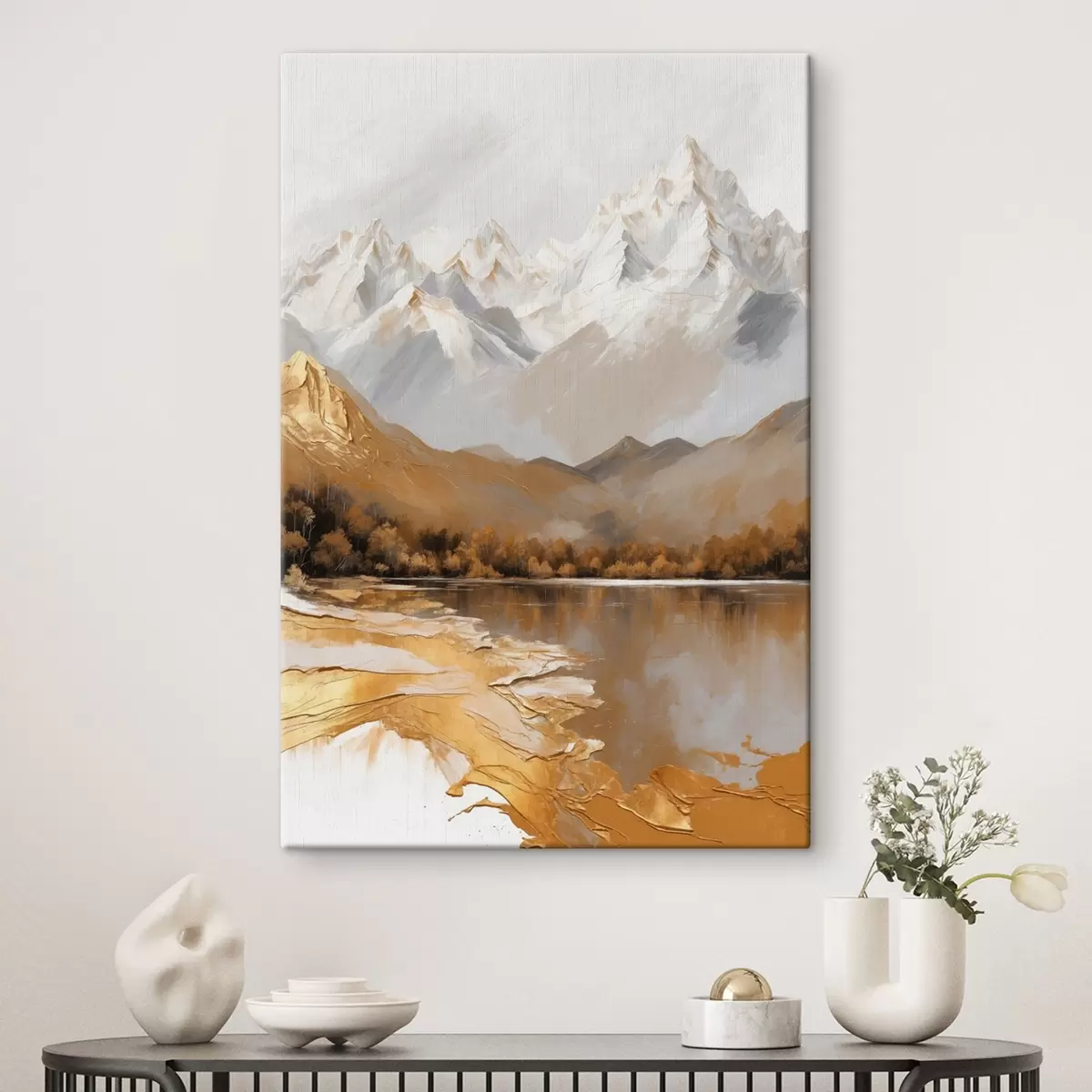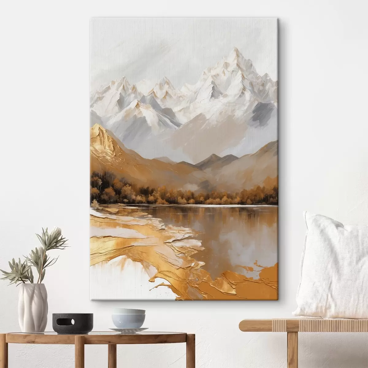 Tableau Paysage de montagne avec un lac dans des couleurs chaudes s44877