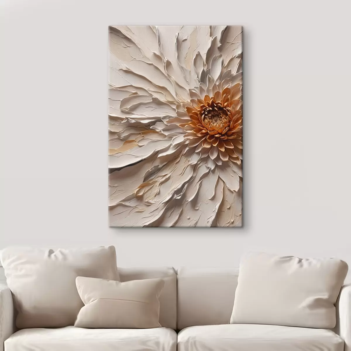 Tableau Fleur volumétrique aux pétales crémeux et au cœur chaud s44878