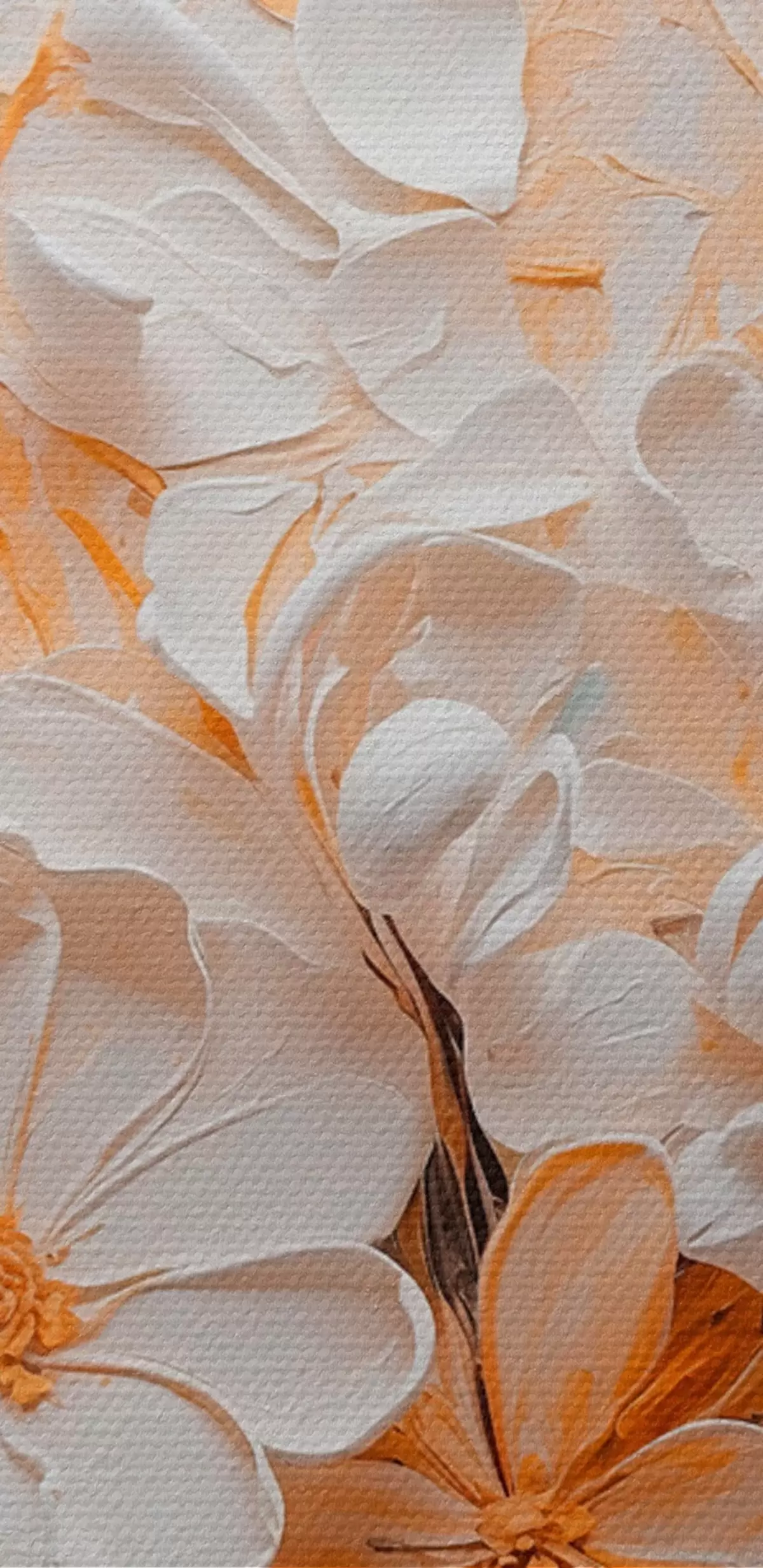 Tableau Fleurs blanches et pêche sur fond bleu avec des pastels Nr s44879