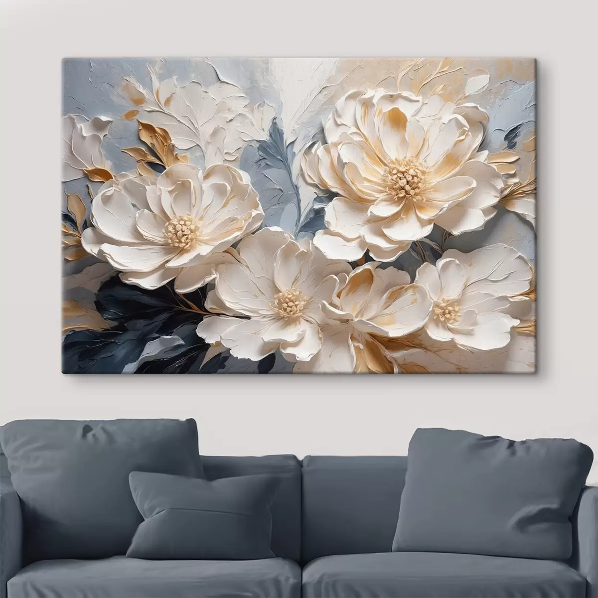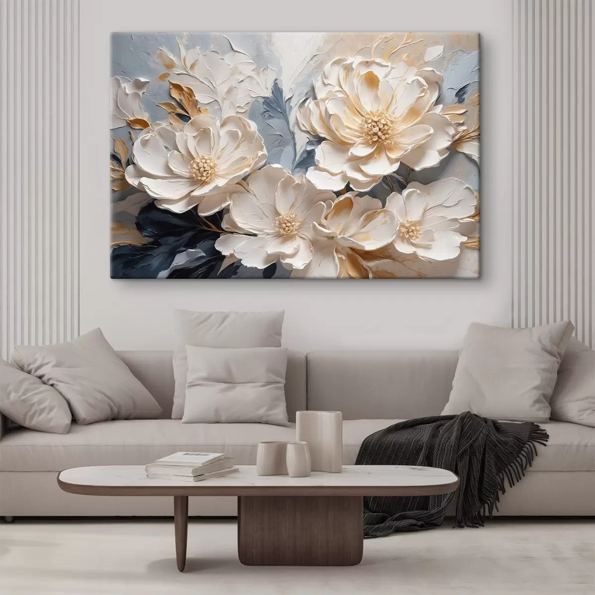 Tableau Pivoines crème volumineuses sur fond bleu clair Nr s44880