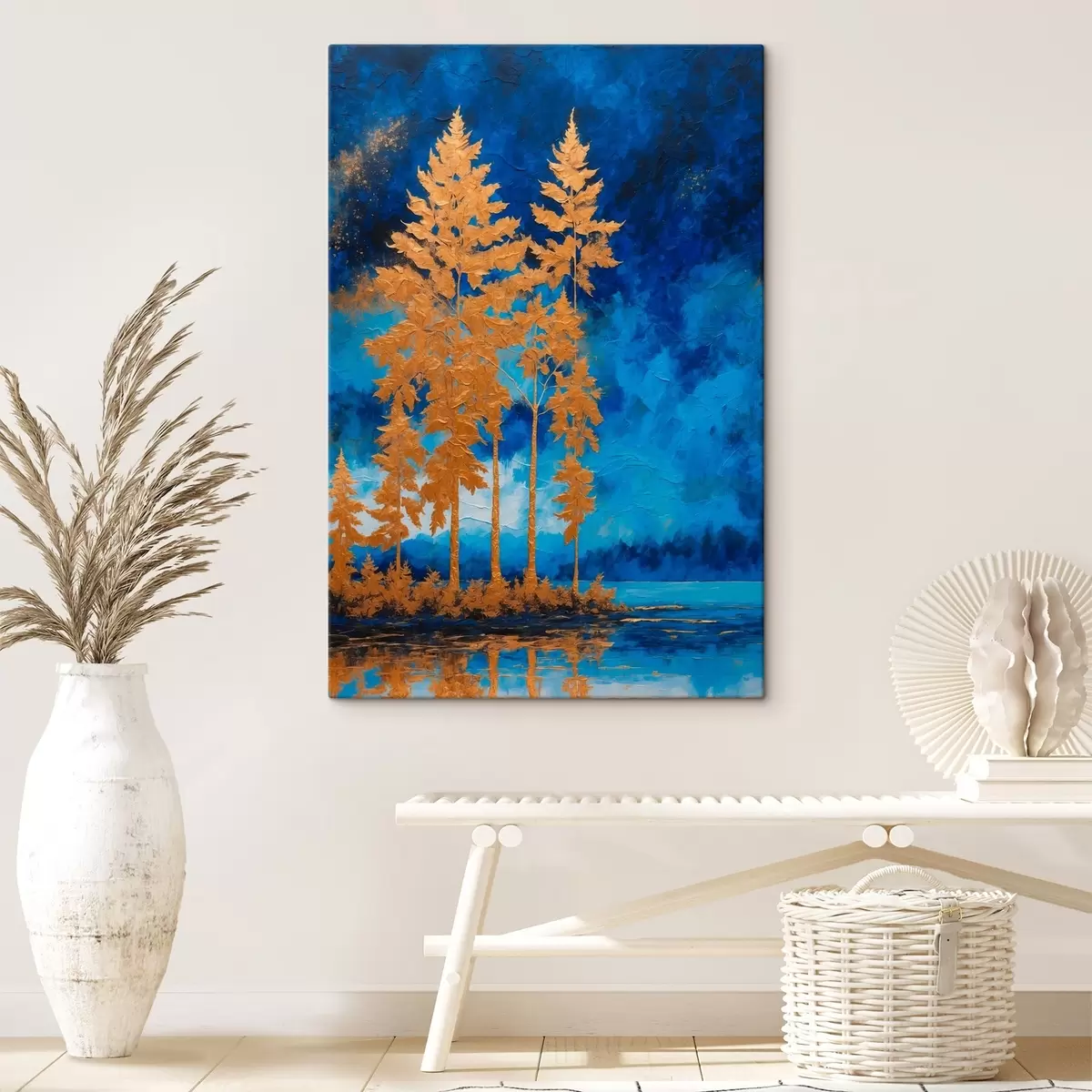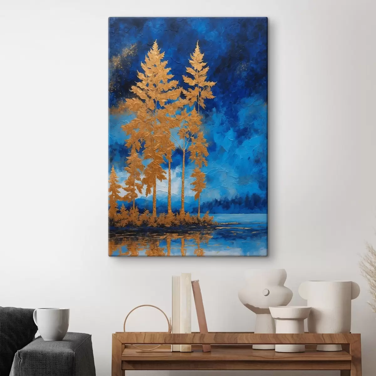 Tableau Arbres sur fond de ciel nocturne dans les tons bleus Nr s44888