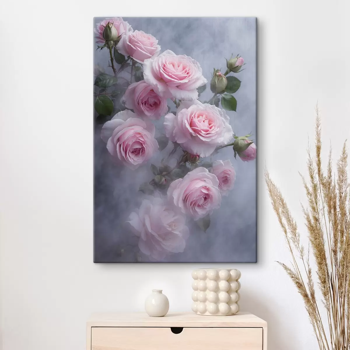Tableau Roses roses dans le brouillard avec des feuilles vertes Nr s44892