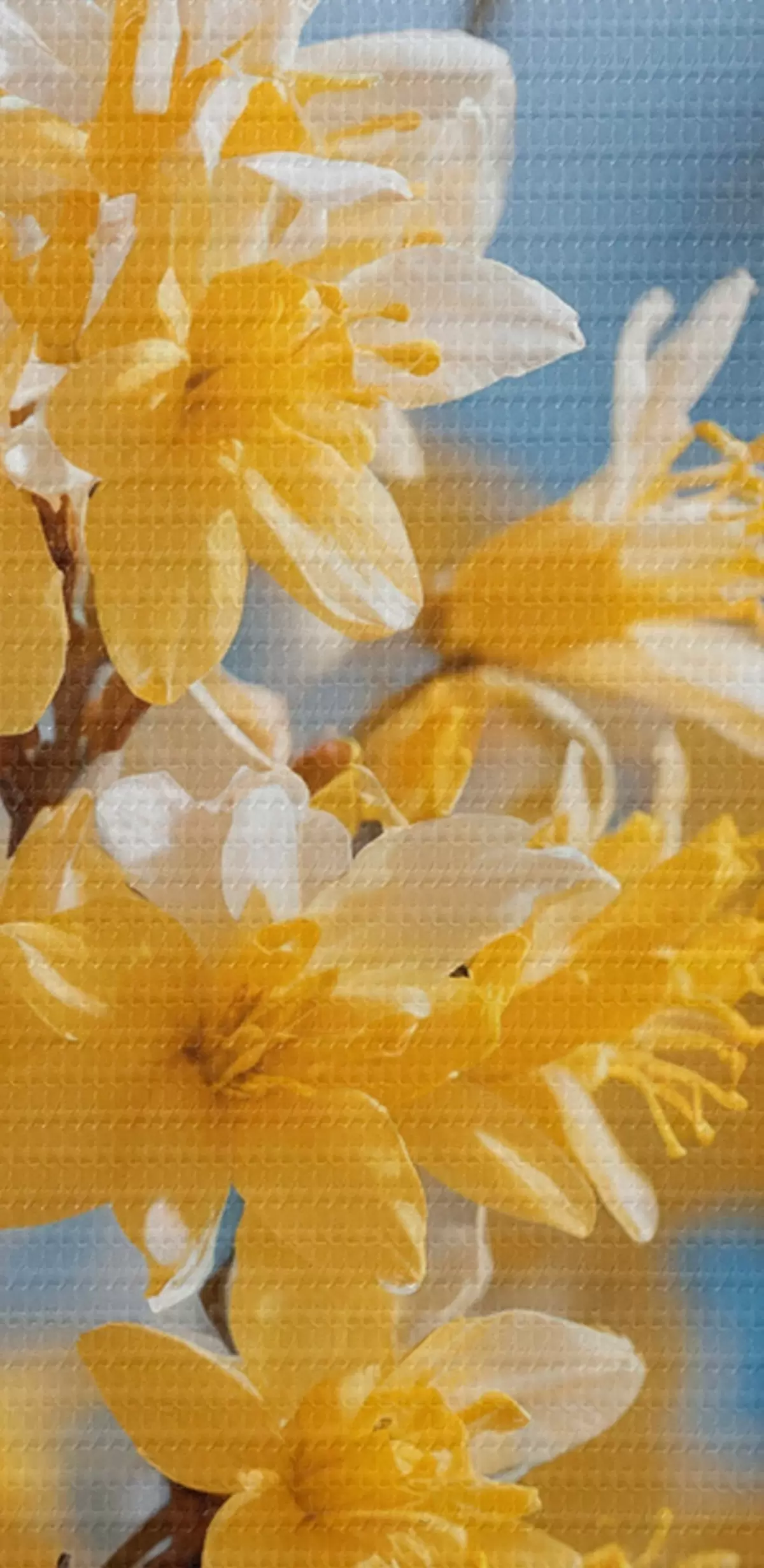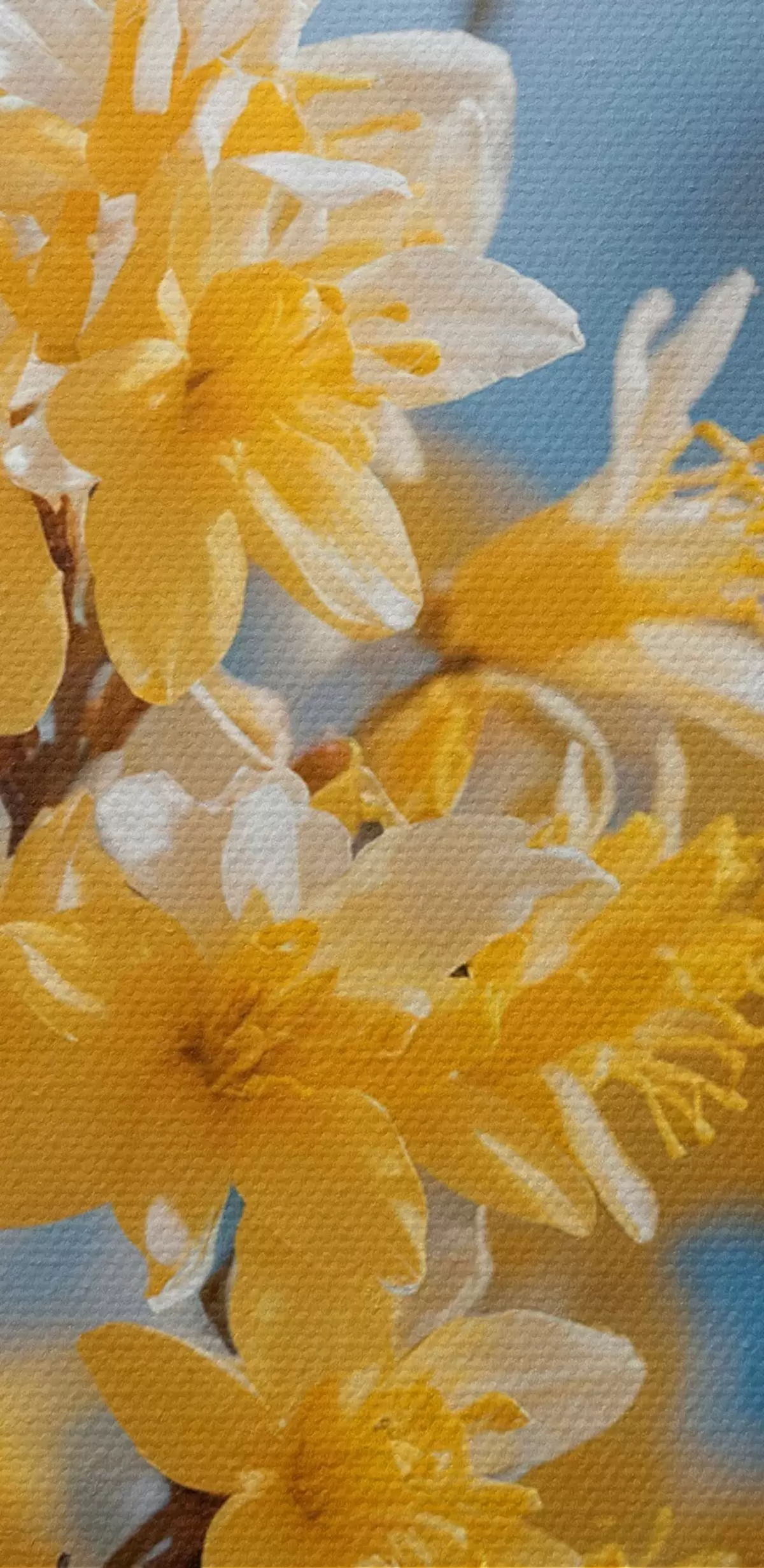 Tableau Fleurs jaunes sur fond bleu avec mise au point douce Nr s44894