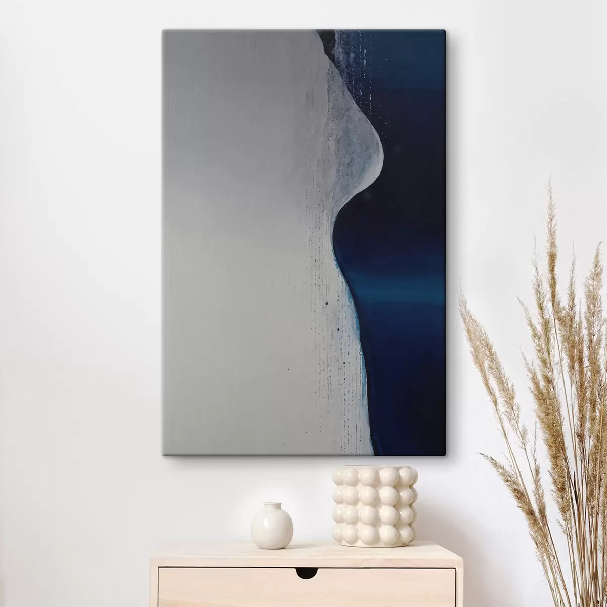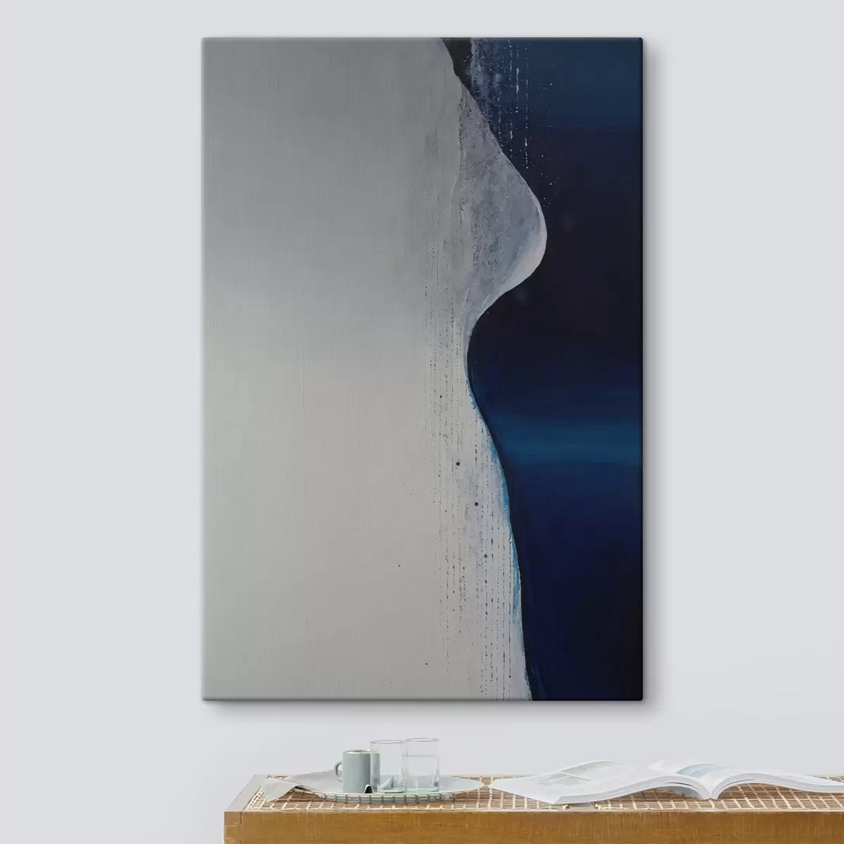 Tableau Abstraction en forme de vague avec palette blanche et bleue palette bleue s44895