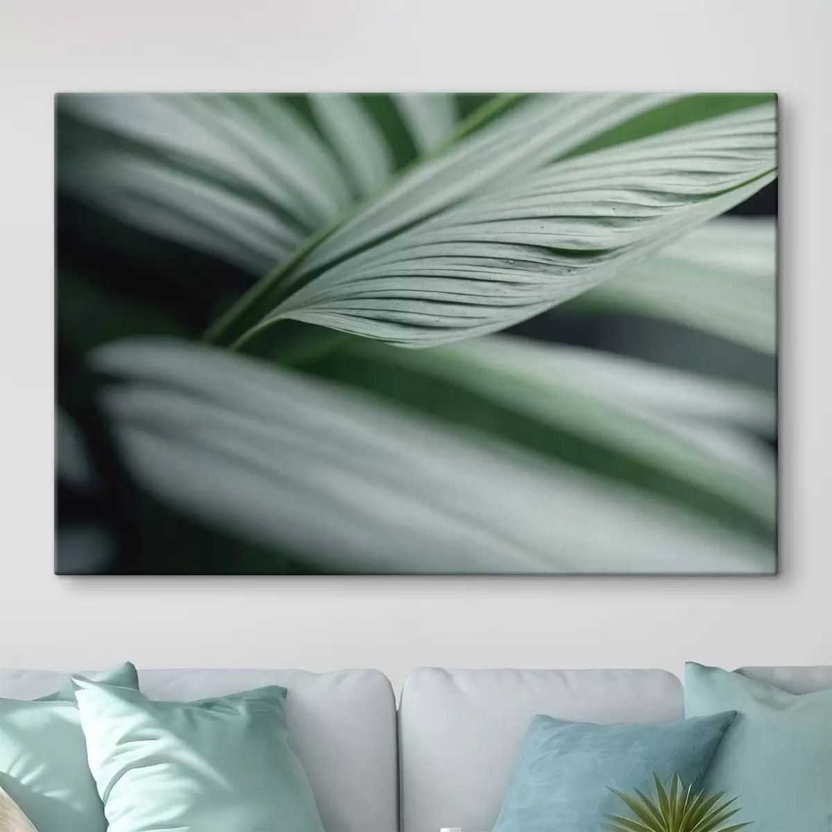 Tableau Feuilles tropicales avec gouttelettes d'eau dans un environnement brumeux Nr s44903
