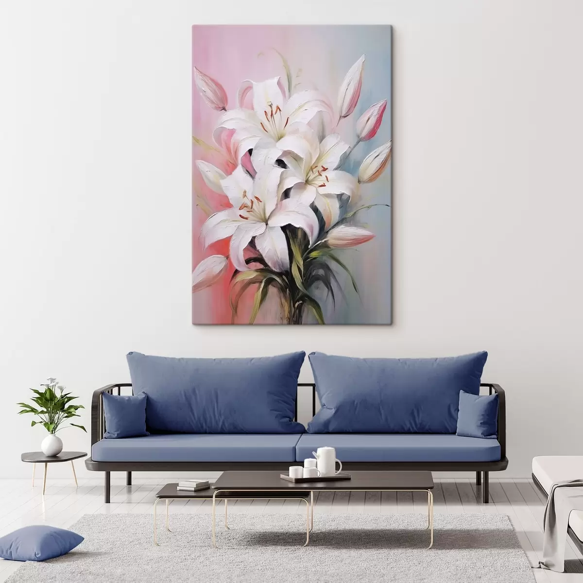 Trois types de matériaux peuvent être commandés : Economic Canvas - matériau dense et durable pour l'impression numérique, identique à la toile de peintre, surface imperméable, reproduction réaliste des détails, matériau à grain moyen. Premium Canvas - la texture ressemble à celle d'une toile de peintre (petits fils entrelacés). Reproduction douce et détaillée de l'image sur une surface mate. Eco-Premium - tissu 100 % coton de haute qualité. Grâce aux fibres naturelles de coton, le matériau est durable et résistant à l'usure. Excellente reproduction des couleurs et des détails.