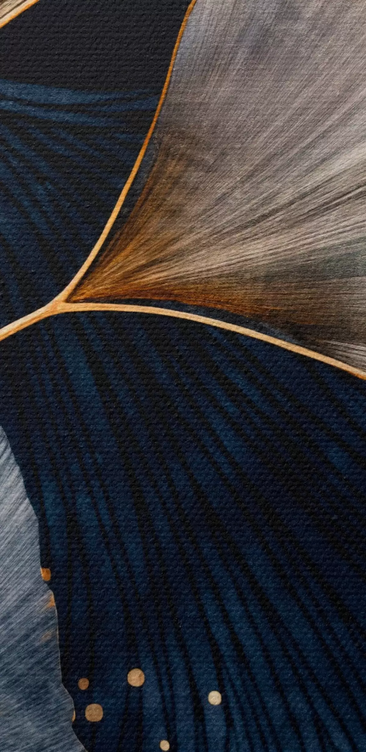 Tableau Feuilles de ginkgo dans les tons jaunes et bleus, élégant fond sombre, art moderne, style minimaliste, inspiré par la nature s44921