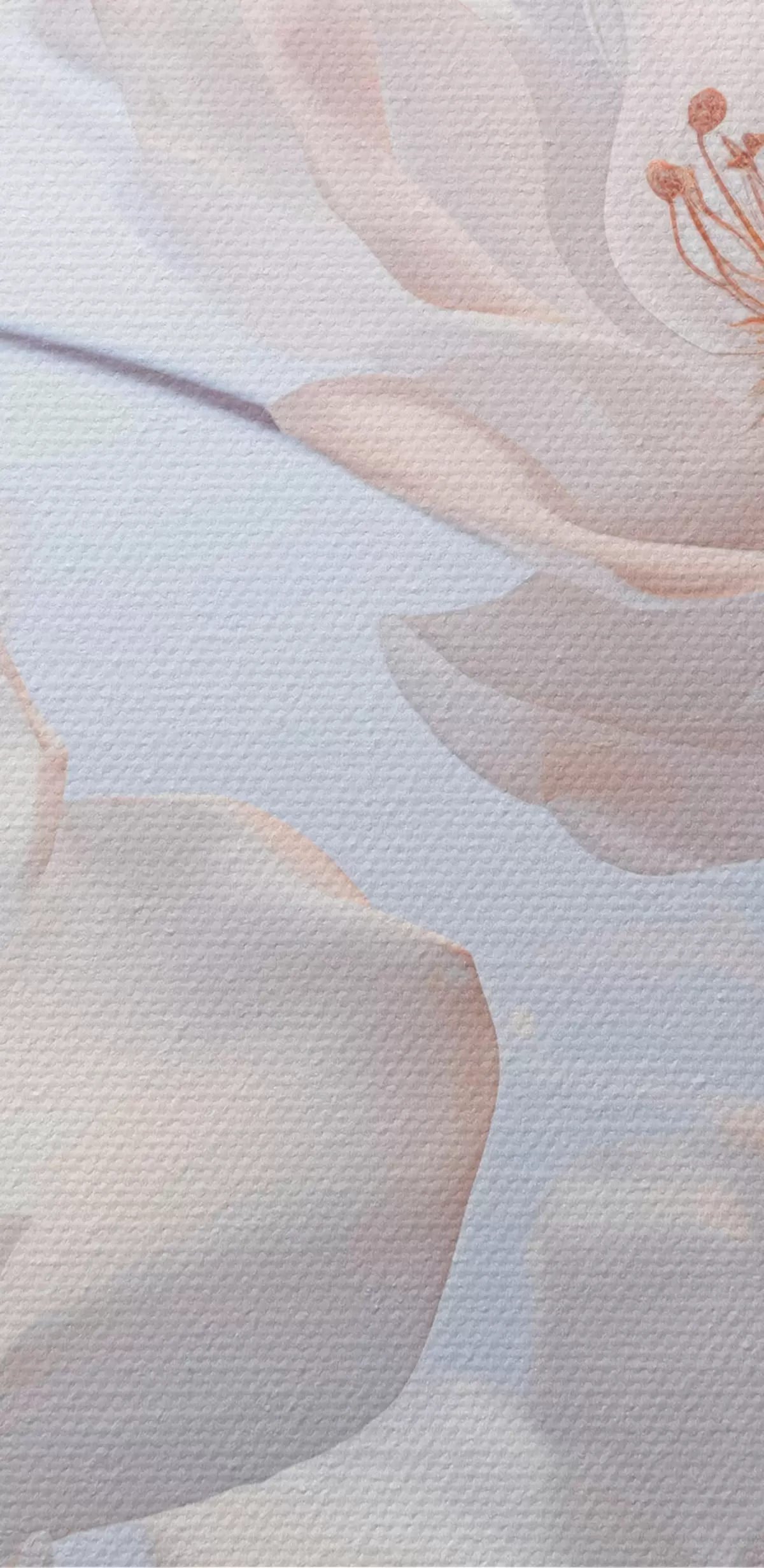 Tableau Fleurs blanches aux pétales translucides, fond bleu clair doux, élégant, romantique, délicat, rêveur  s44931