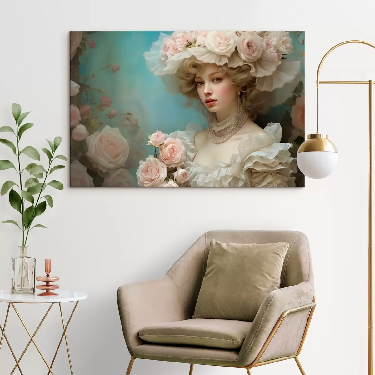 Tableau Femme élégante avec un chapeau et des fleurs dans un style artistique s44944