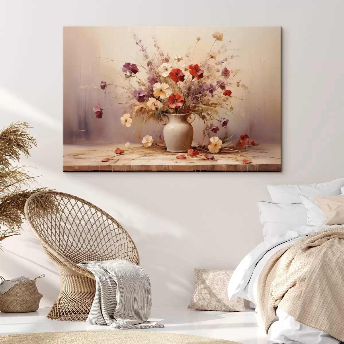 Tableau Bouquet de fleurs sauvages dans un vase, peinture à l'huile s44947