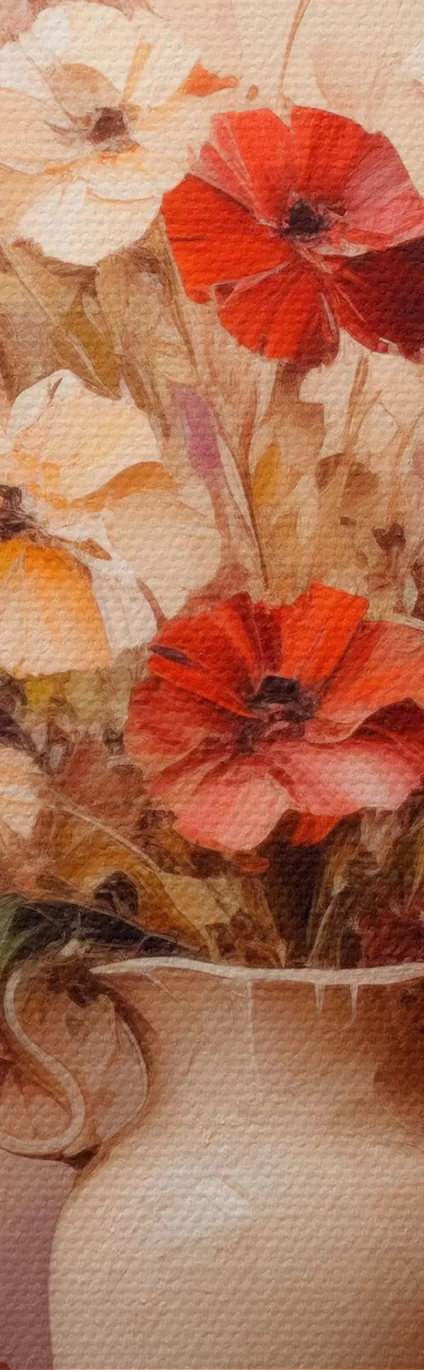 Trois types de matériaux peuvent être commandés : Economic Canvas - matériau dense et durable pour l'impression numérique, identique à la toile de peintre, surface imperméable, reproduction réaliste des détails, matériau à grain moyen. Premium Canvas - la texture ressemble à celle d'une toile de peintre (petits fils entrelacés). Reproduction douce et détaillée de l'image sur une surface mate. Eco-Premium - tissu 100 % coton de haute qualité. Grâce aux fibres naturelles de coton, le matériau est durable et résistant à l'usure. Excellente reproduction des couleurs et des détails.