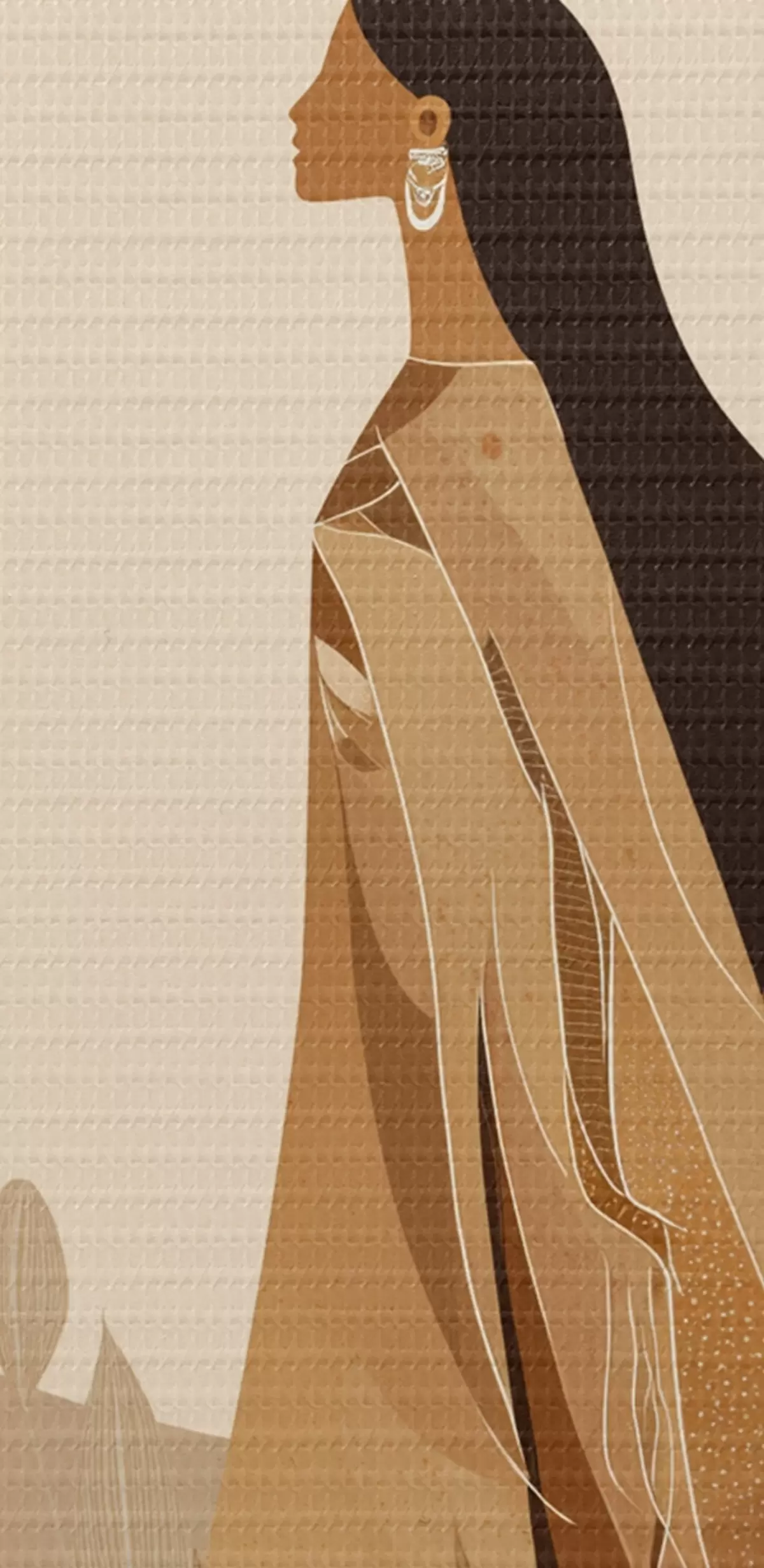 Tableau Abstraction avec femme et aigle dans le ciel, couleurs beiges s44978