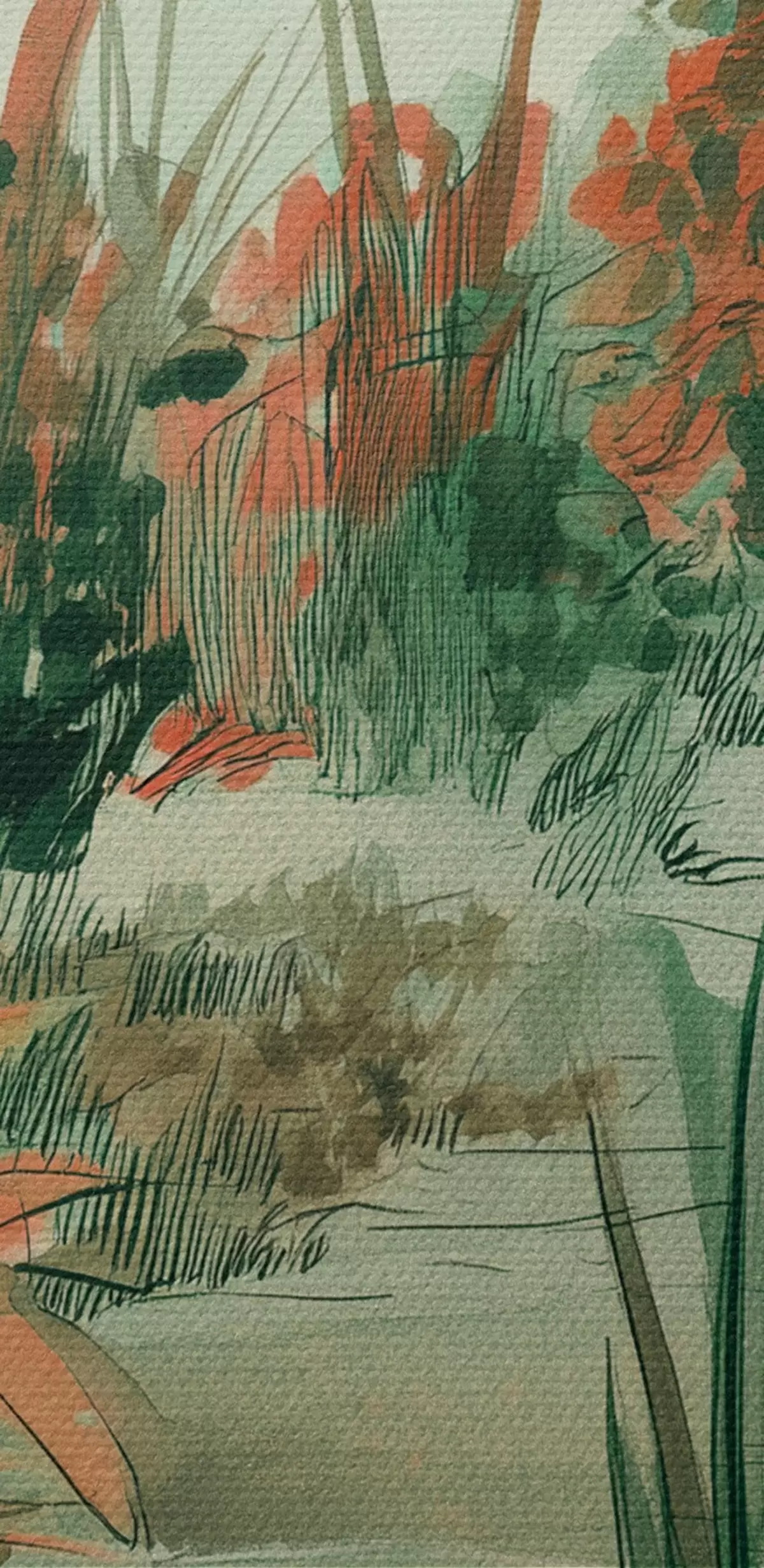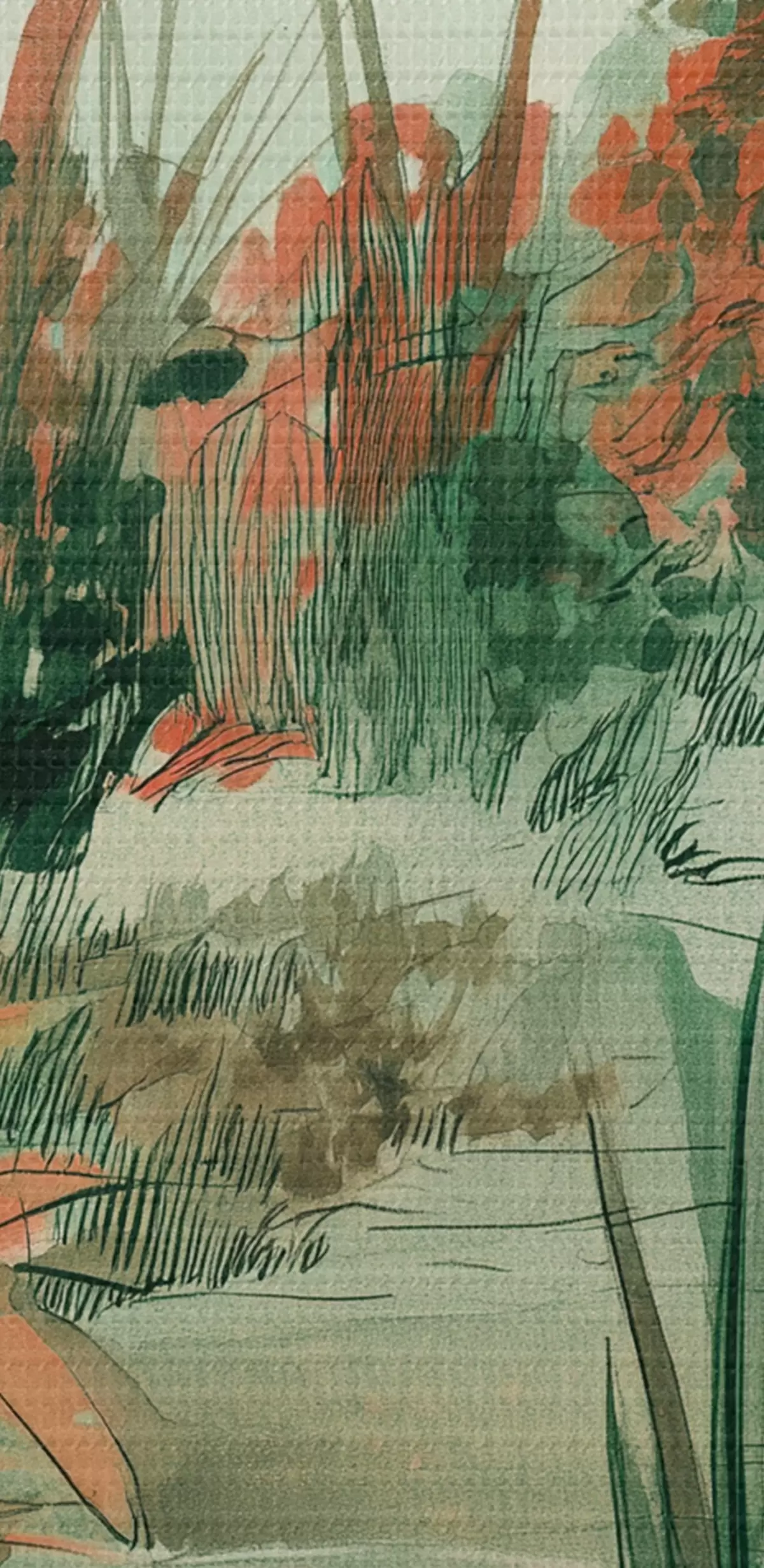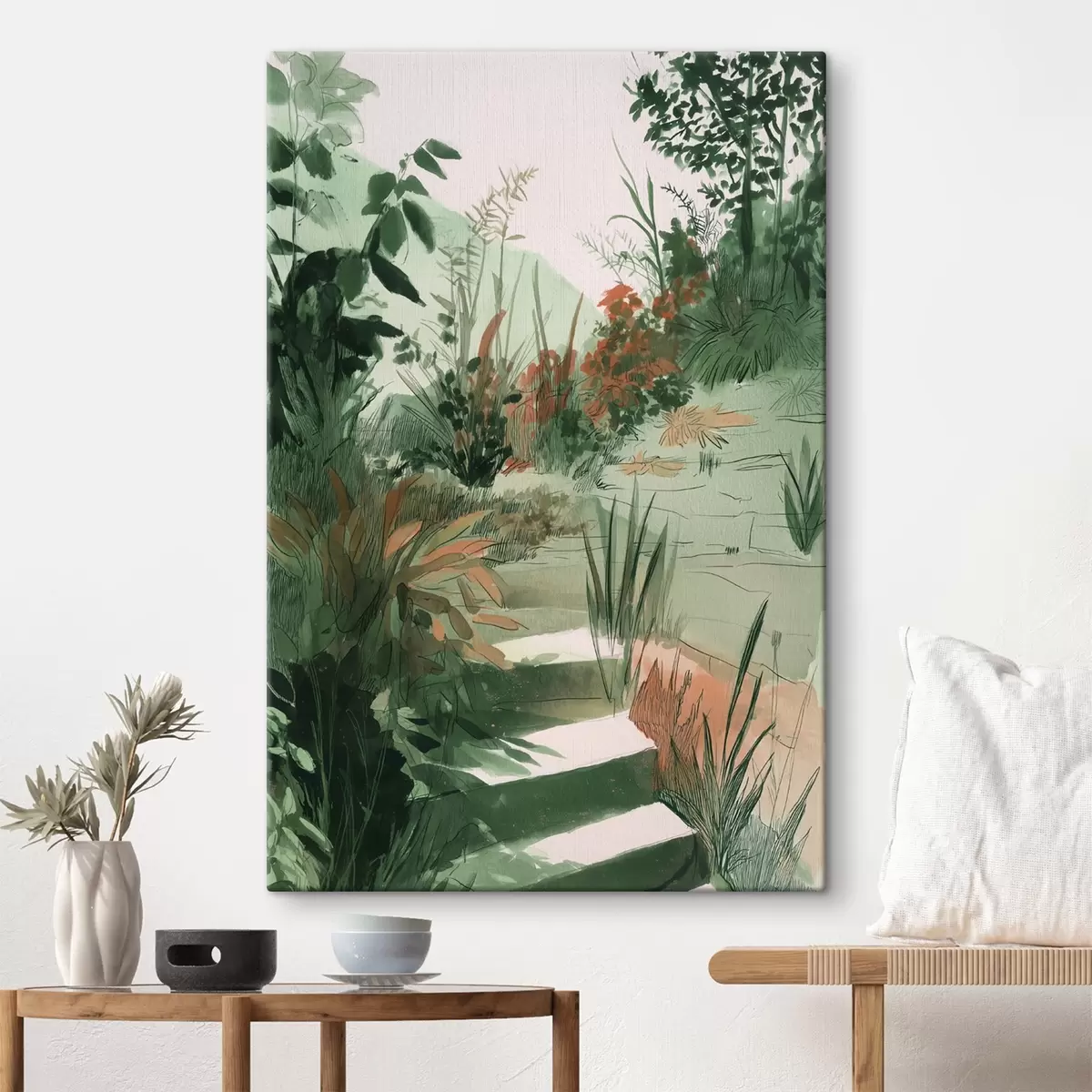 Tableau Jardin oriental avec buissons et arbres, couleurs vertes Nr s44982