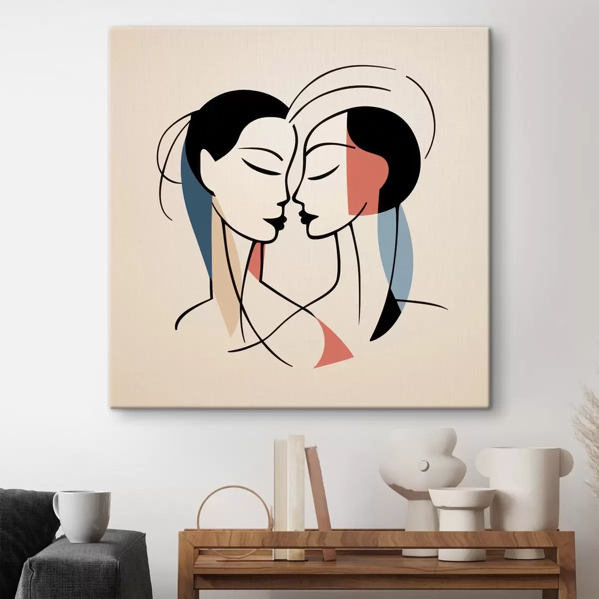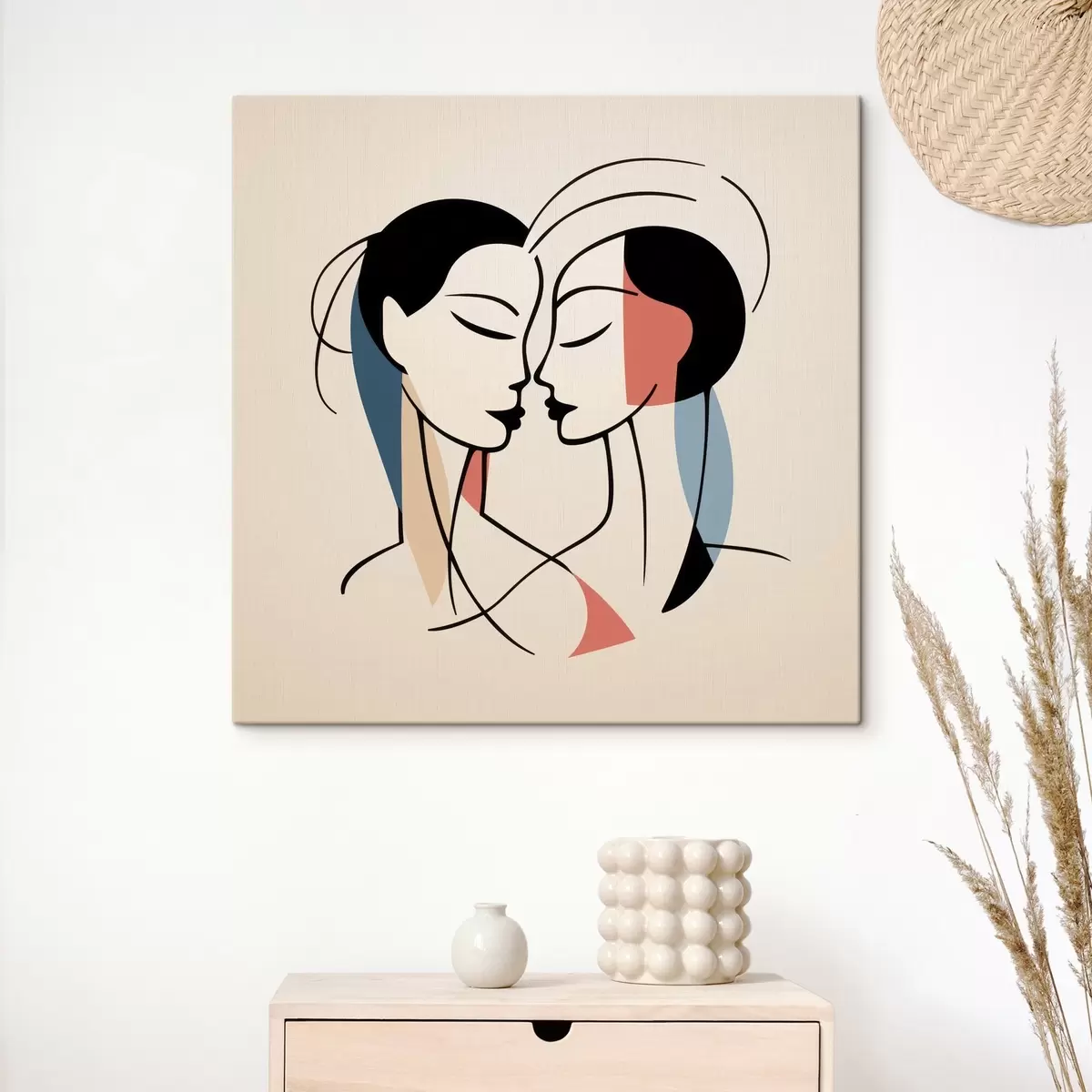 Tableau Deux visages en style abstrait avec des éléments colorés Nr s45037