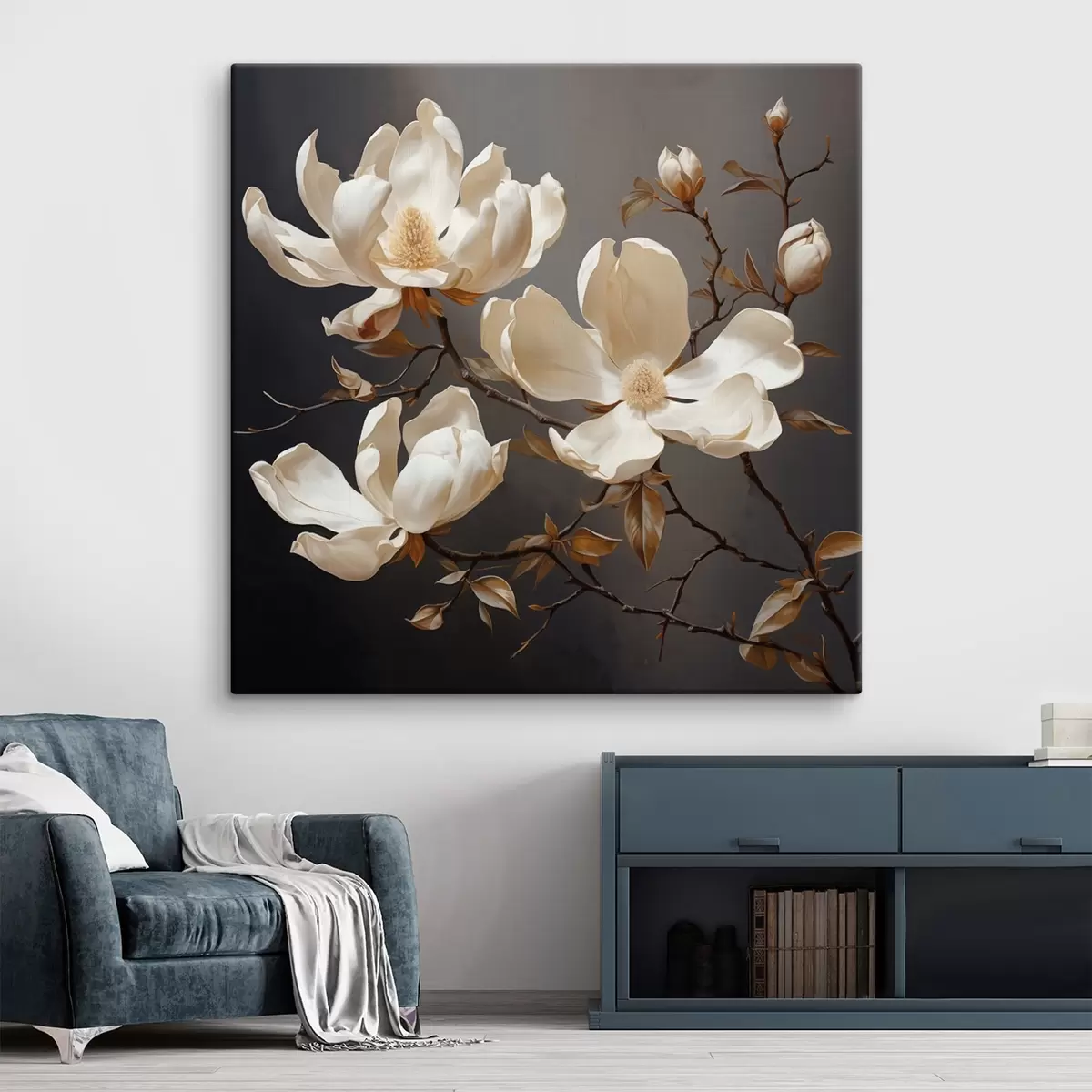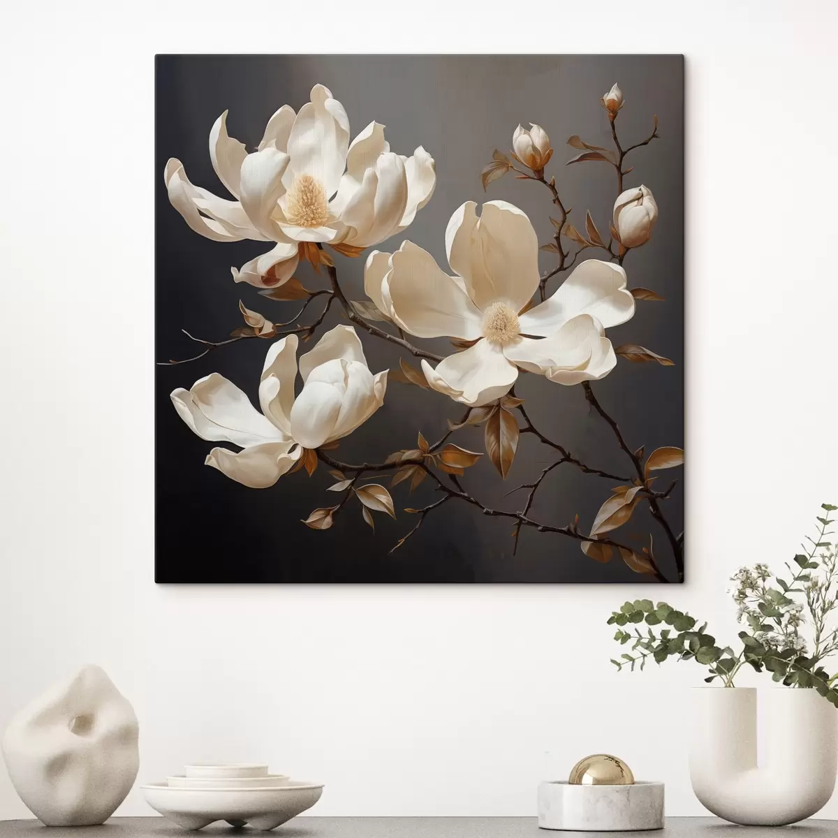 Tableau Magnolias blancs sur fond sombre dans un style pictural s45038
