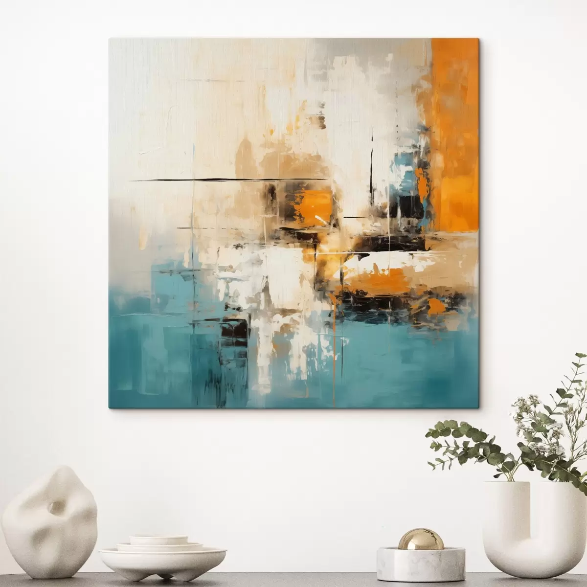 Tableau Art contemporain avec des coups de pinceau texturés et des accents lumineux Nr s45041