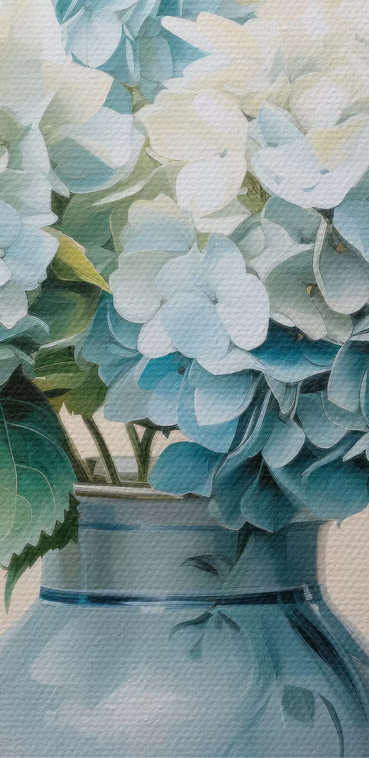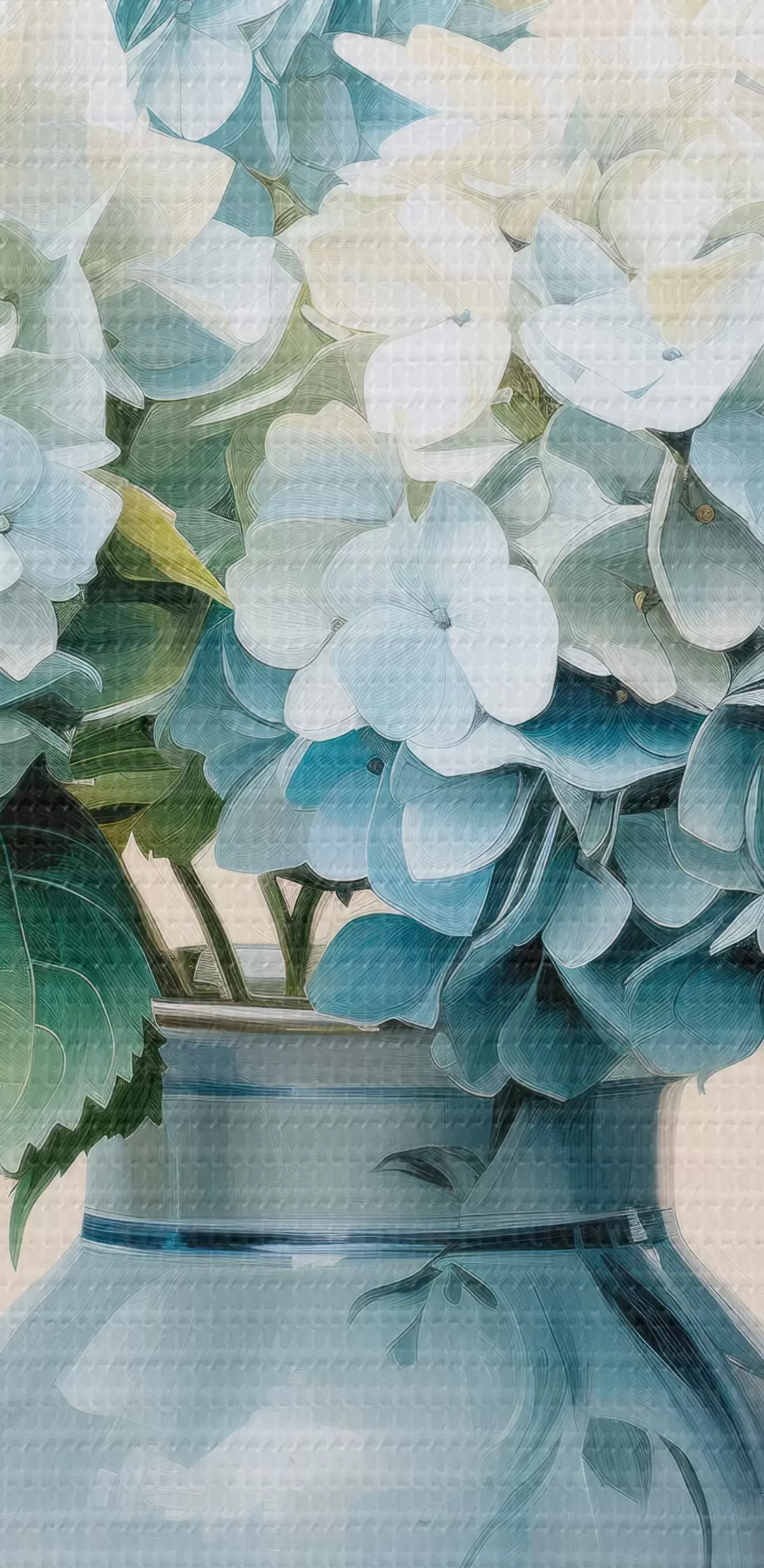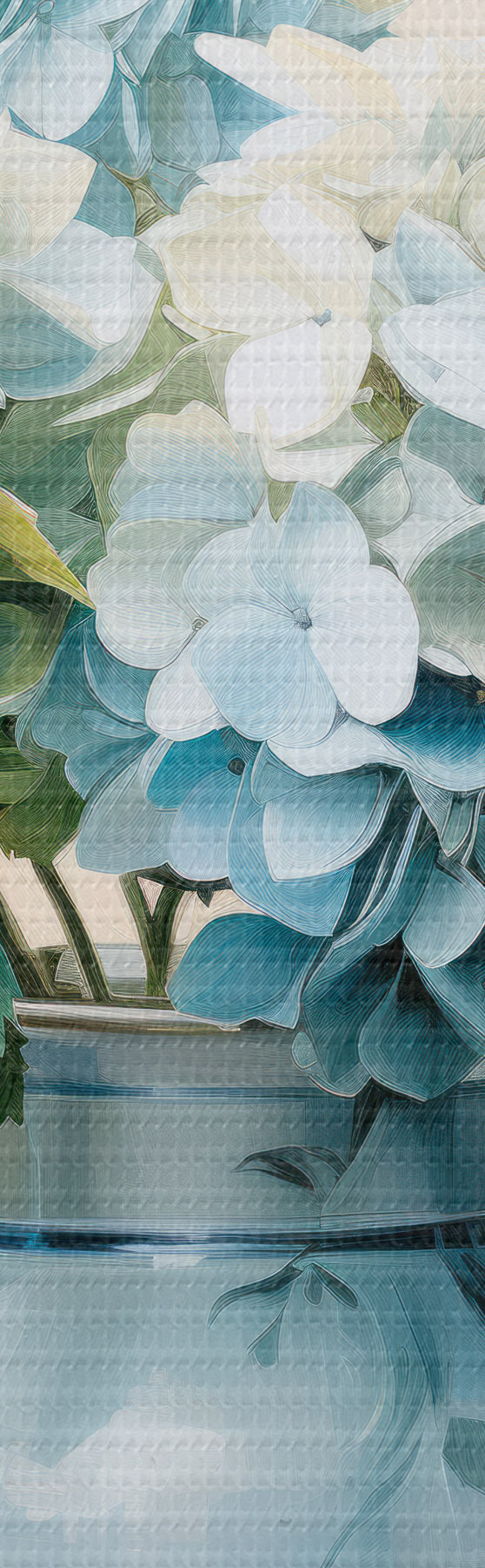 Tableau Hortensias frais dans un vase bleu sur fond clair s45043