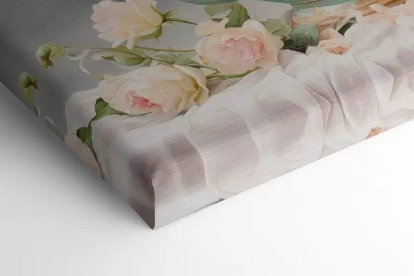 Tableau Nature morte avec des roses délicates dans un service à thé s45045