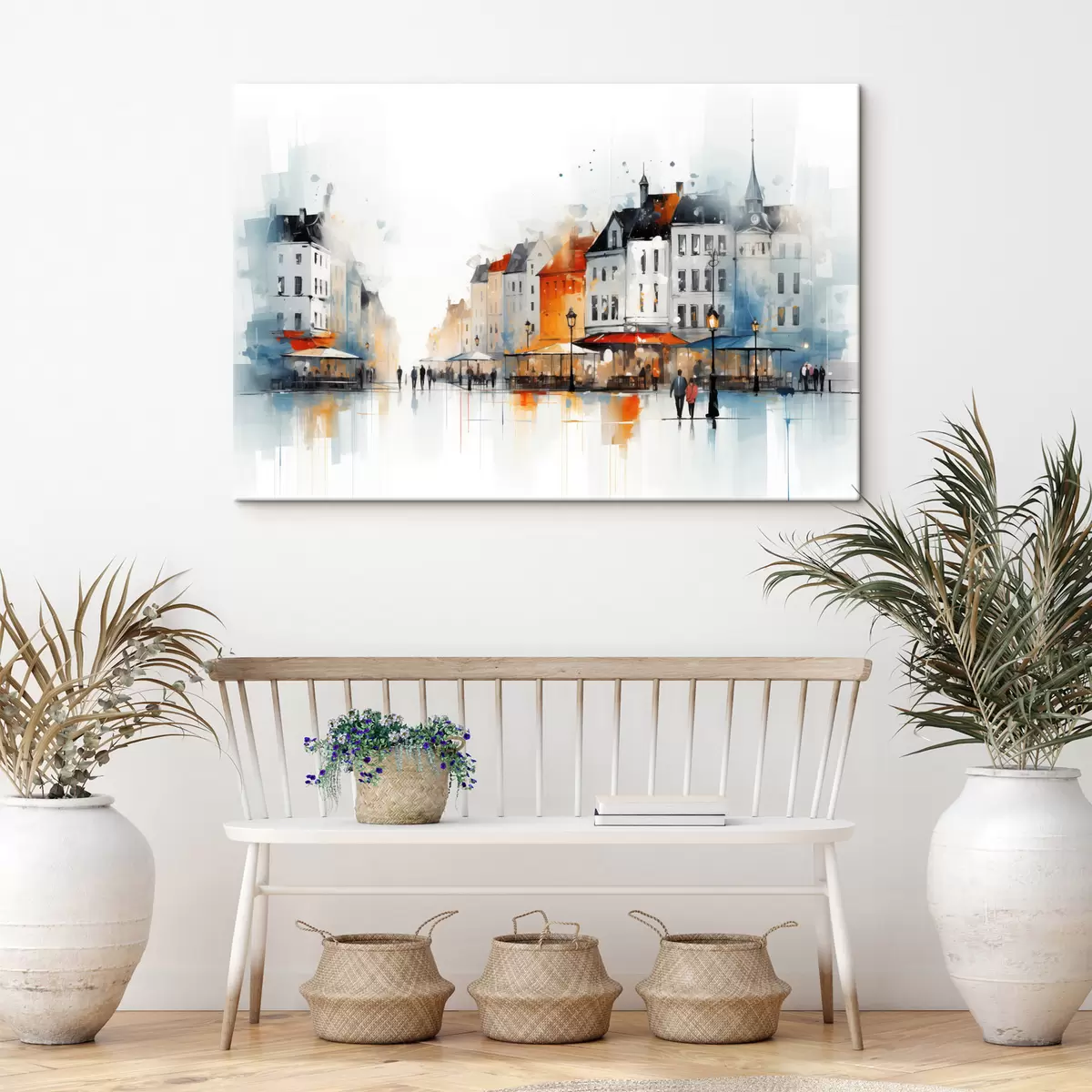 Tableau Scène de rue avec des bâtiments et des personnes dans un style artistique s45050