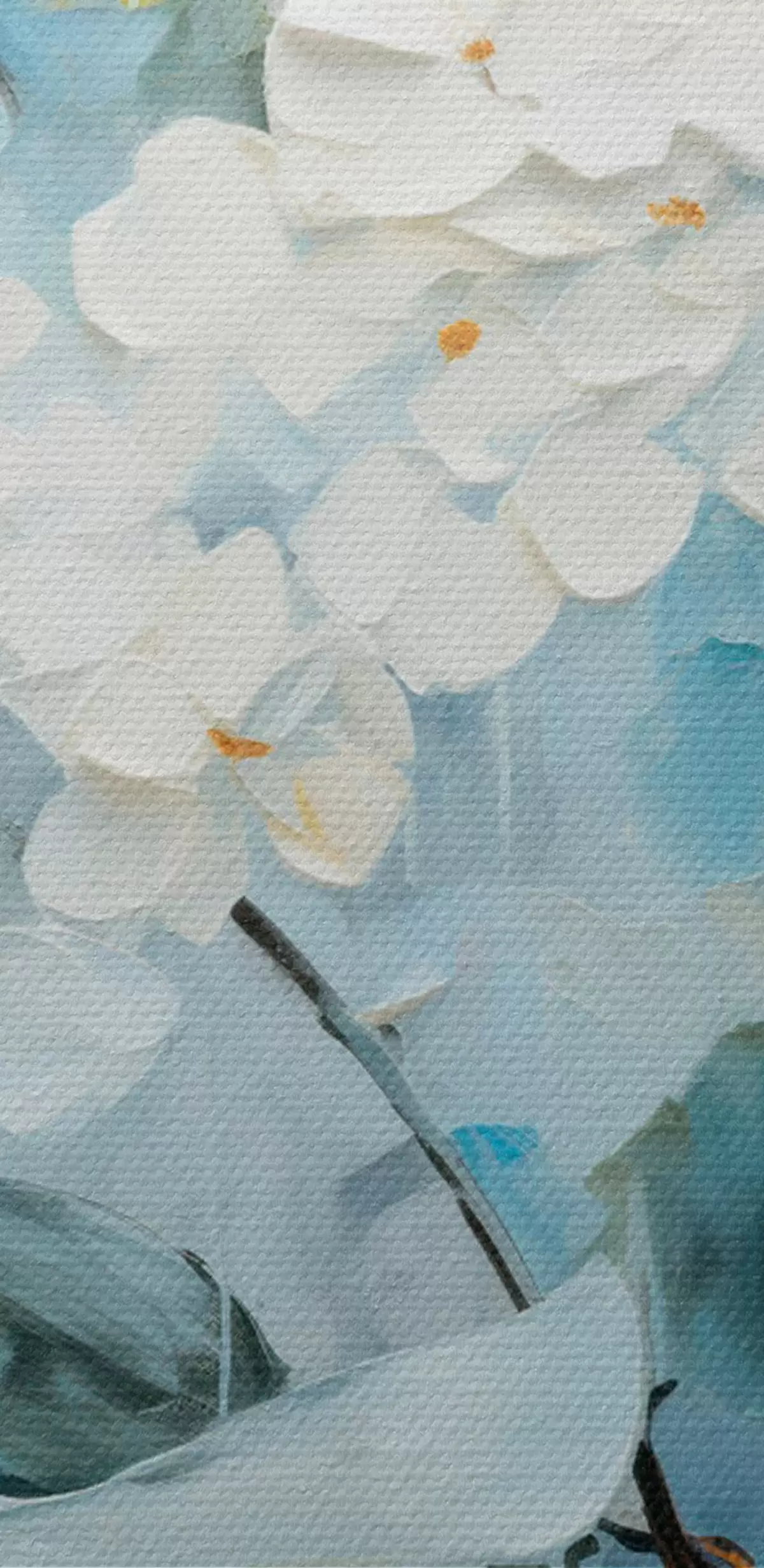Tableau Hortensias blancs en fleurs dans le style de la peinture à l'huile s45051